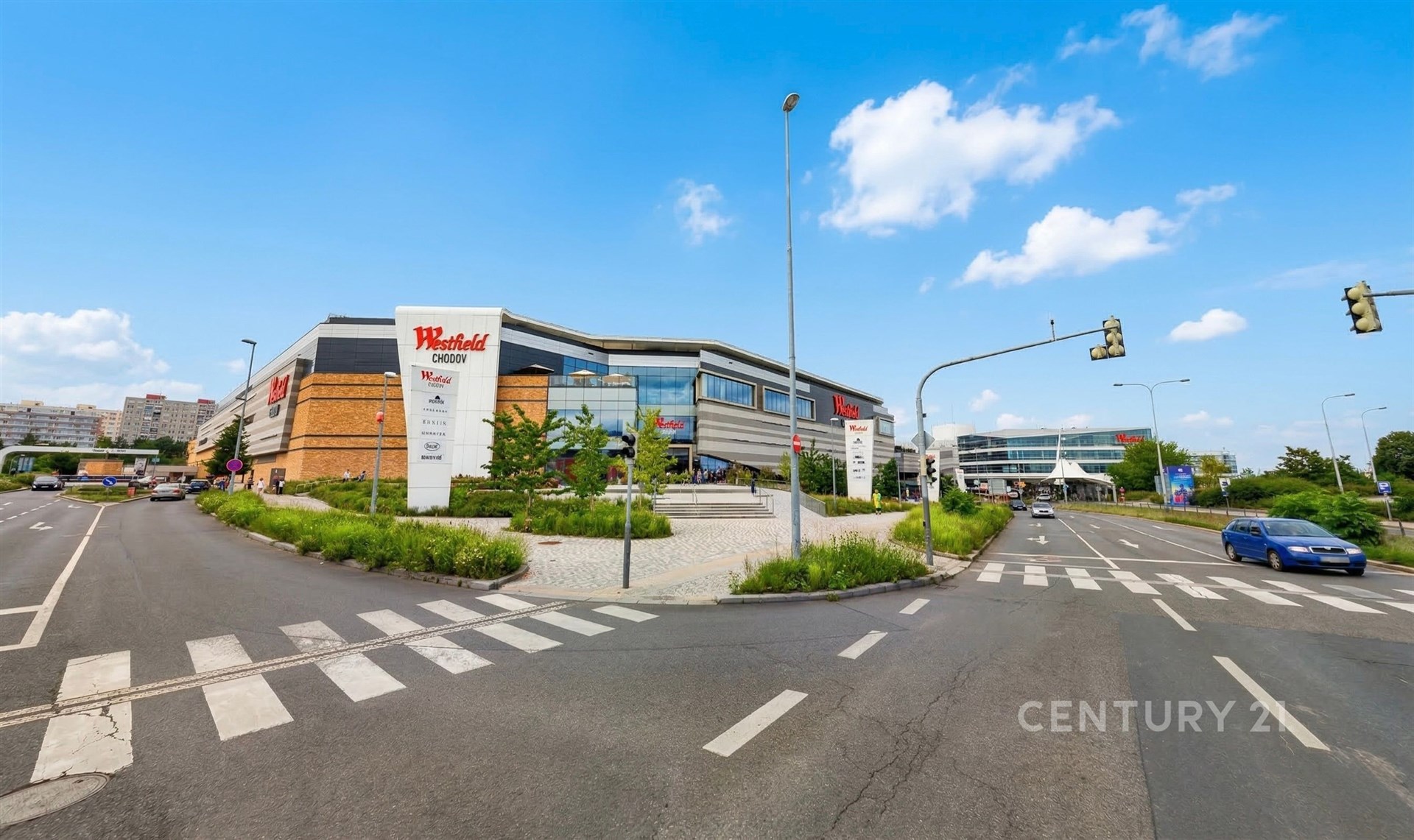 Kompletní občanská vybavenost je snadno dostupná — obchodní centrum Westfield Chodov leží přibližně 3,5 km od pozemku (6–8 minut jízdy). Stanice metra C Opatov je vzdálena cca 2,5 km, autobusem 5–7 minut.