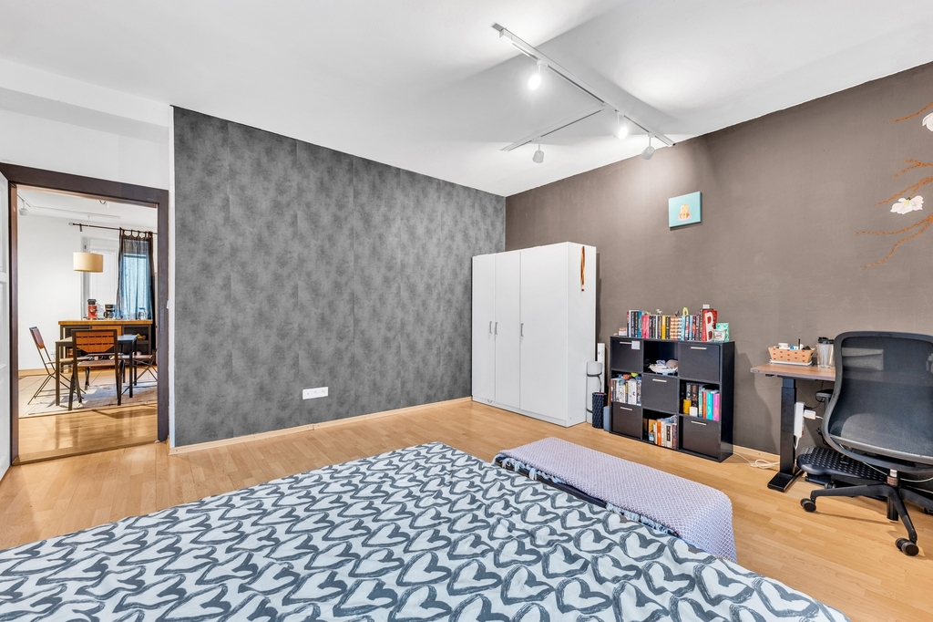 Praktická dispozice: Byt o velkorysé ploše 99 m² nabízí pohodlné uspořádání 3+kk a skvělým dispozičním řešením, které si můžete prohlédnout v přiloženém půdorysu. Dvě samostatné prostorné ložnice, společný a velmi prostorný obývací pokoj s kuchyňským koutem. Z předsíně je pak samostatný vstup do koupelny a WC je rovněž samostatné. Byt je tak perfektní pro rodinu i pro "spolubydlení".