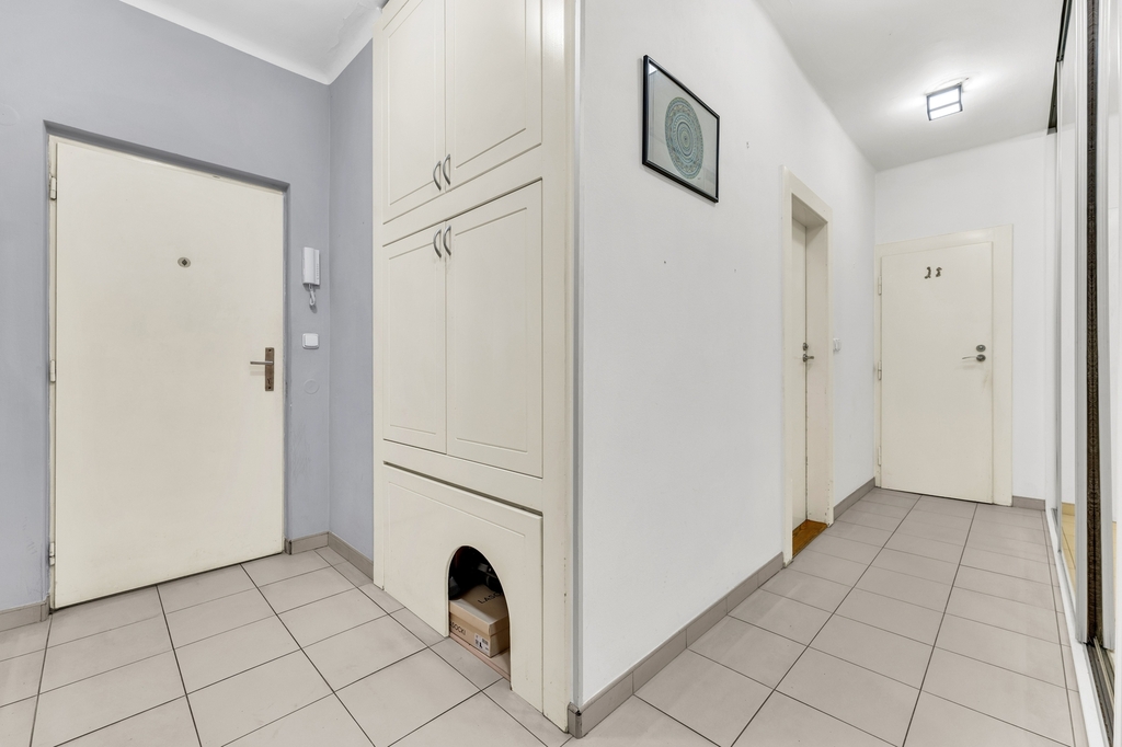 Klidná poloha: Okna bytu směřují na obě strany domu do nerušeného prostoru, což zajišťuje klid i přes centrální polohu.