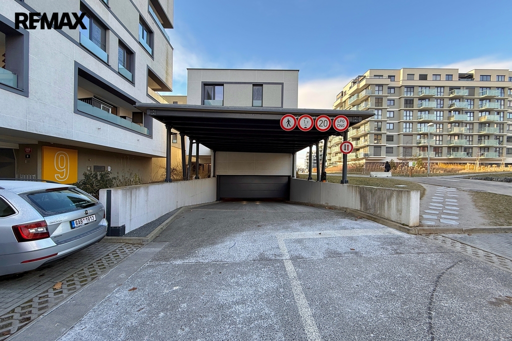 Garážové stání je umístěno v podzemních garážích domu, což zajišťuje pohodlné a bezpečné parkování po celý rok. Přístup je bezbariérový, suchou nohou přímo z domu, s automatickými vjezdovými vraty na dálkové ovládání. Parkovací stání se nachází přímo u vstupu do bytového domu.