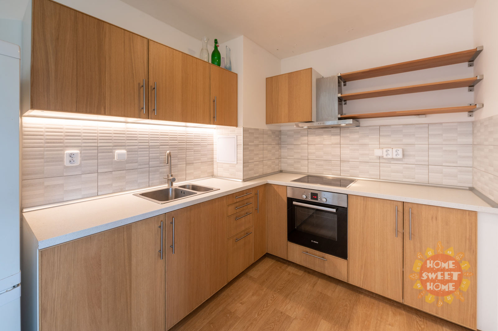 Nabízíme k pronájmu světlý částečně zařízený byt o dispozici 2+kk a celkové rozloze 60 m2 s lodžií, který se nachází ve čtvrtým patře panelového domu s výtahem v ulici Augustinova, Praha 11 – Chodov.
