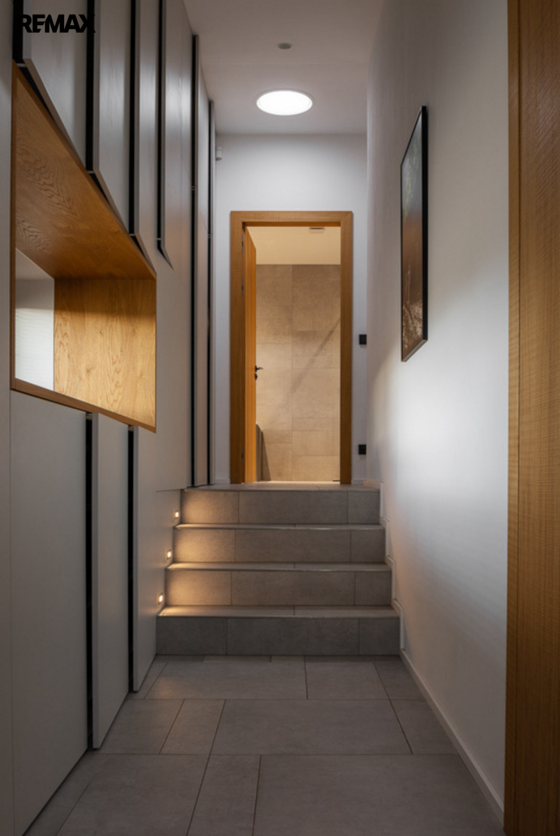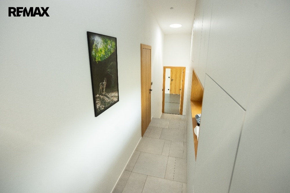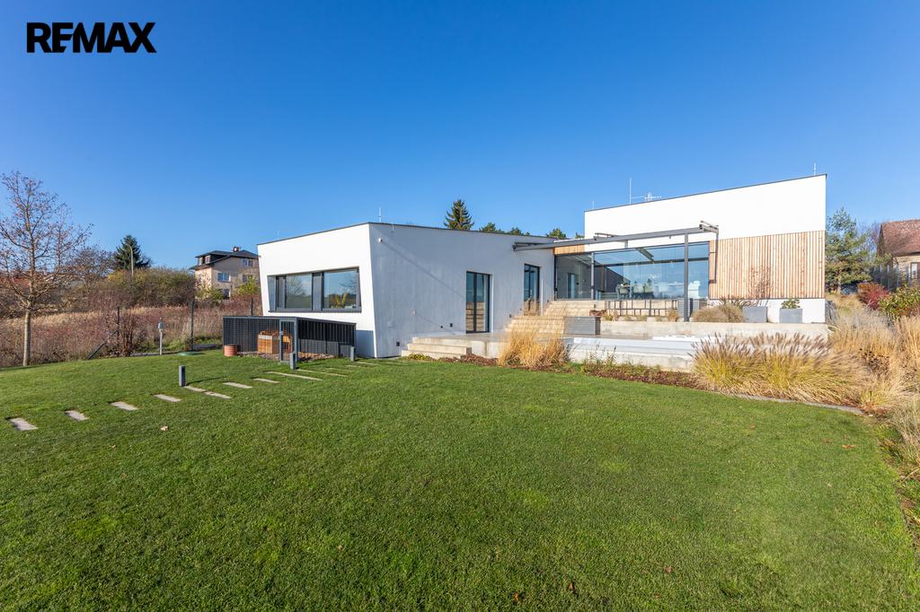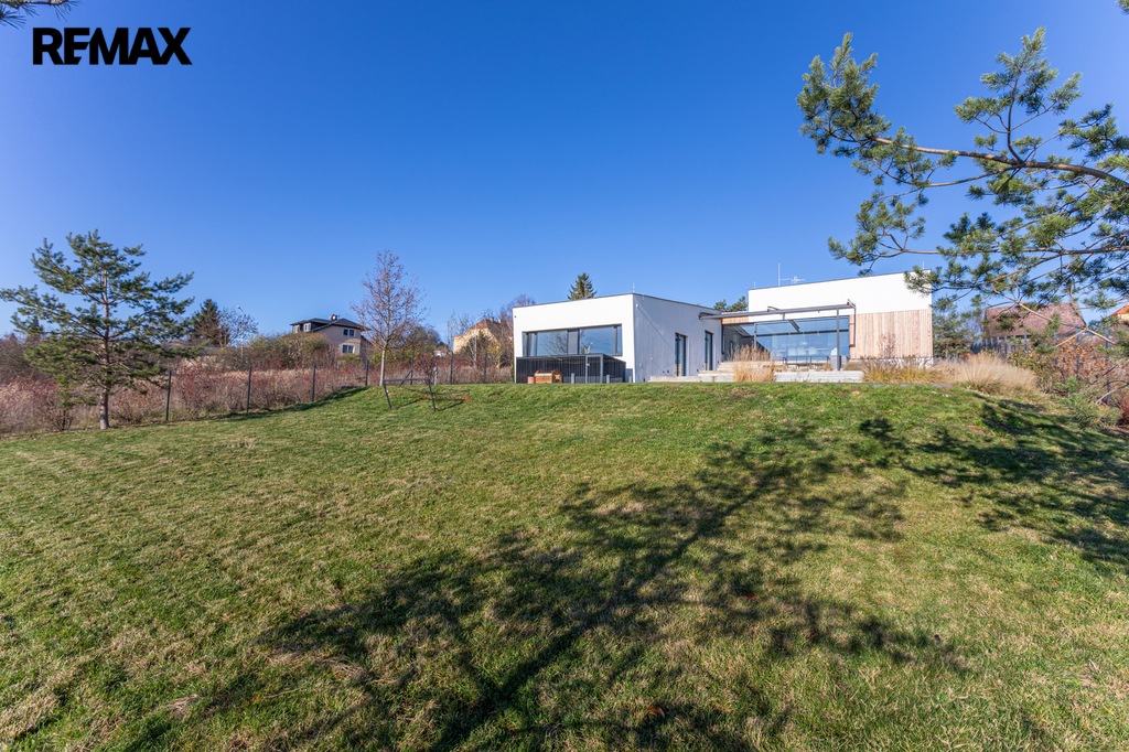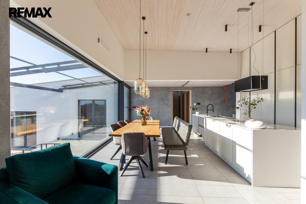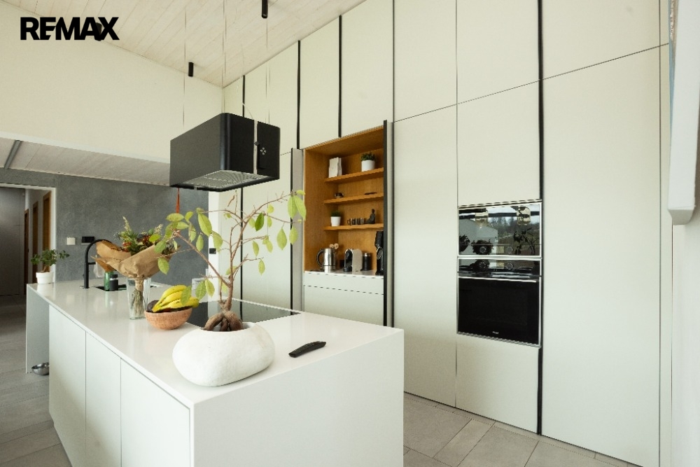Vila je v precizním provedení, interiér je vkusně zařízen vestavěným nábytkem.
