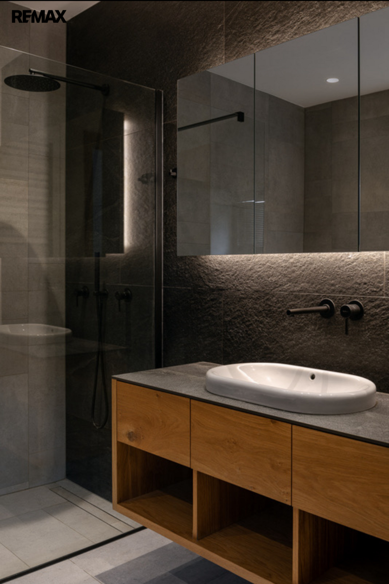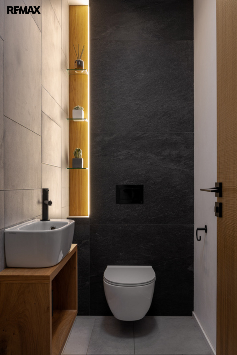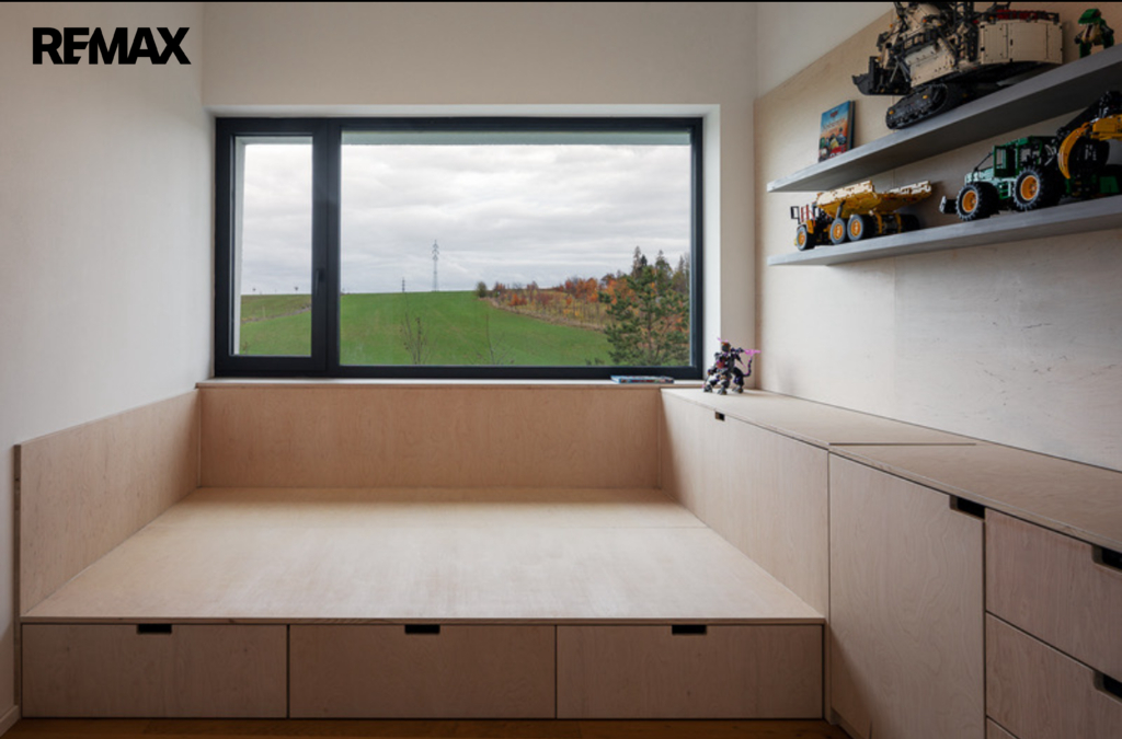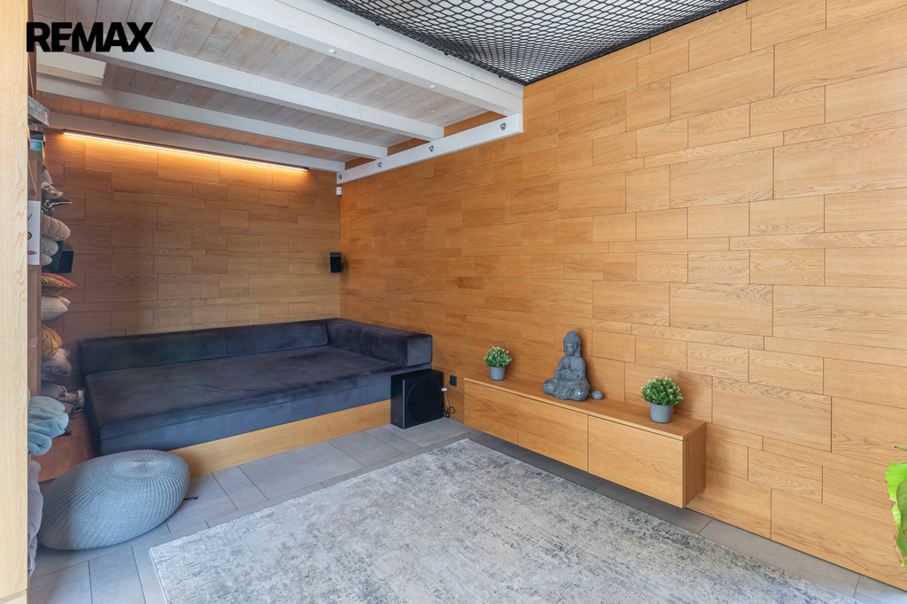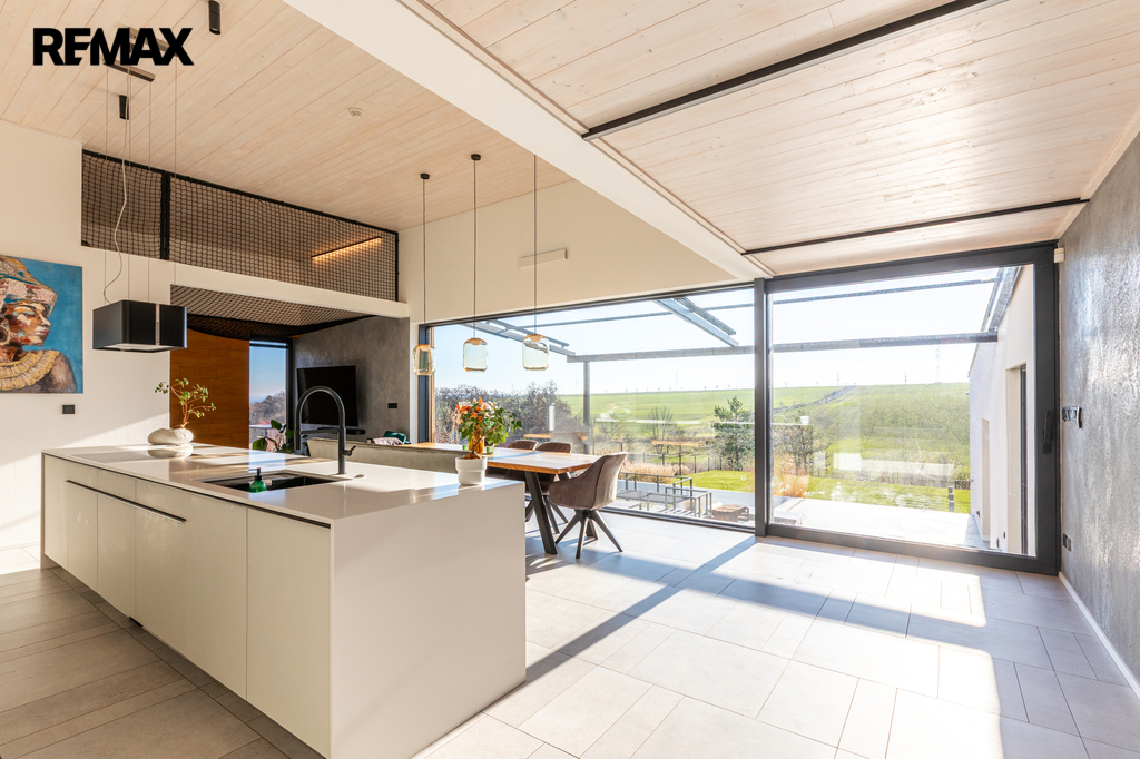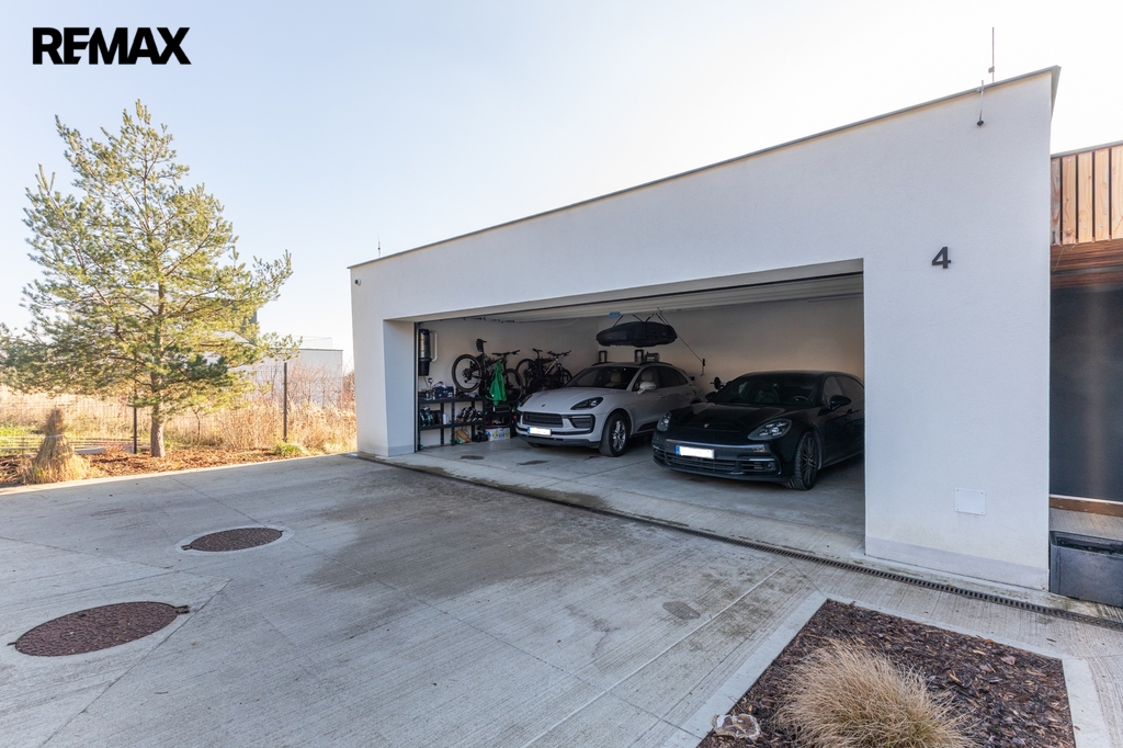 Vila je v precizním provedení, interiér je vkusně zařízen vestavěným nábytkem.