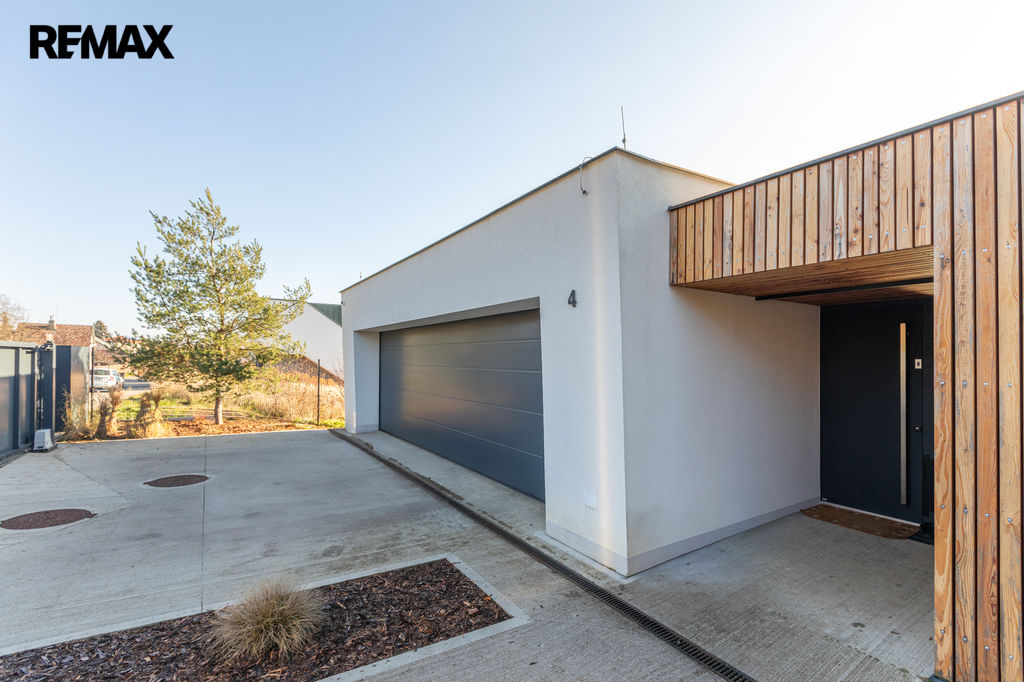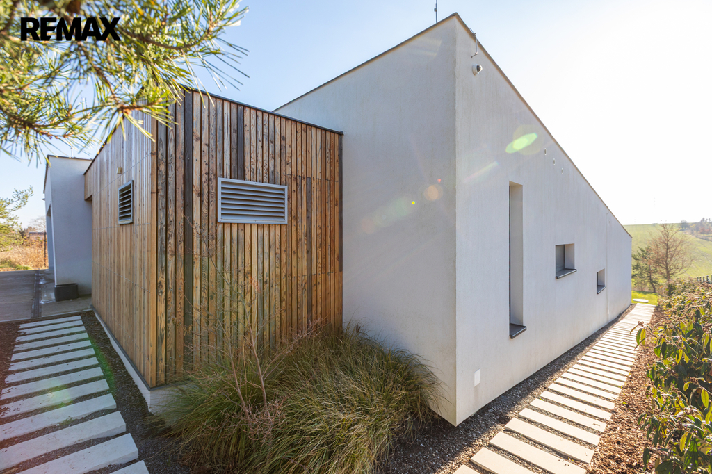 Zděný zateplený dům byl kolaudován v roce 2020, má skvěle promyšlenou dispozici a je chytře zasazen do mírně svažitého terénu.