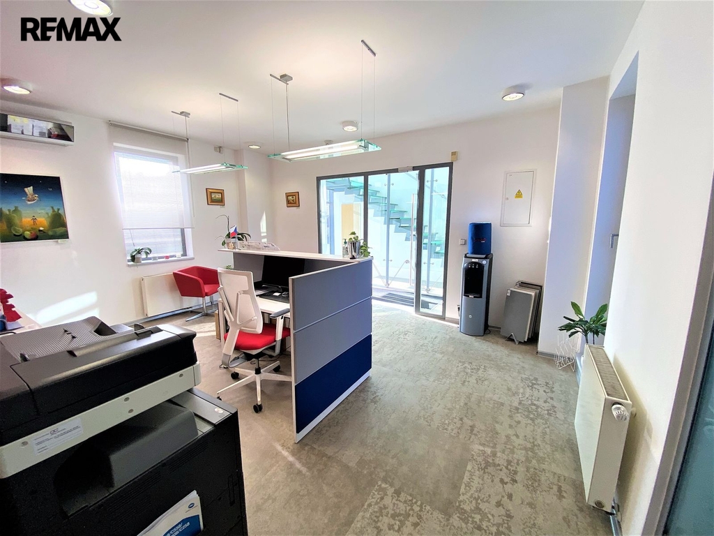 Ve výhradním zastoupení majitele nabízíme k pronájmu celou budovu s kompletně vybavenými dvěma patry kancelářských prostor v reprezentativním designu, s kompletním zázemím o užitné ploše 282m2 + zabezpečené parkování pro sedm osobních vozidel ve vnitrobloku, vše na pozemku o výměře 389m2 a na ideálním viditelném místě na hlavní ulici Náchodská v Horních Počernicích, Praha 9.
