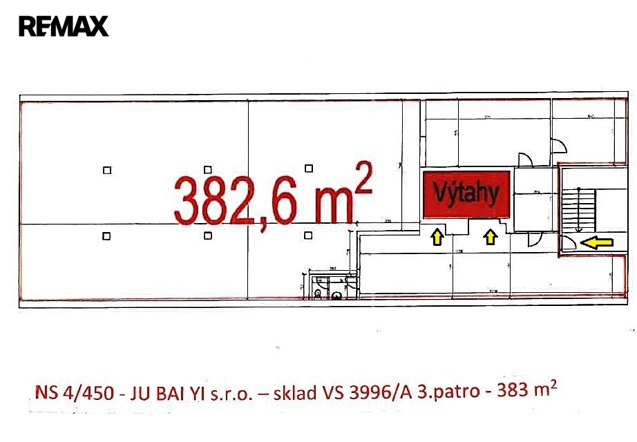 V zastoupení majitele, Vám nabízíme k pronájmu komerční, skladovací prostory o výměře 383m2 se sociálním zázemím ve 3NP s nákladním výtahem v areálu na Praha 9, H. Počernice, ul.F.V.Veselého.