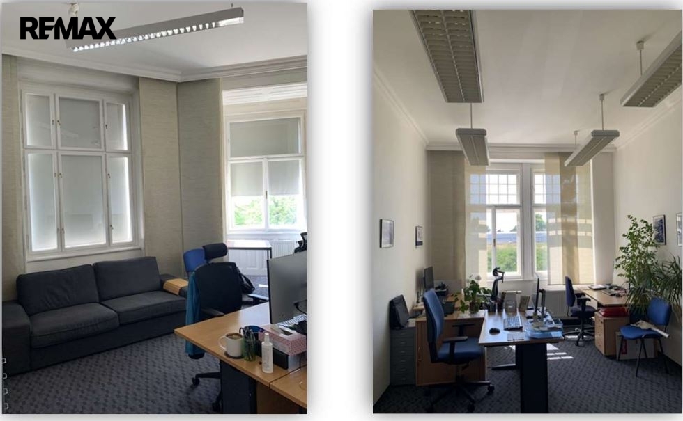Klimatizované nebytové prostory ve 2. NP (s výtahem) v secesní vile, která nabízí typické historické prostorné místnosti s velkou plochou a vysokými stropy se štukovou výzdobou. Dostatek světla v interiérech zajišťuje nárožní poloha vily s jihozápadní orientací, vysokými členěnými obloukovými okny, které doplňují vnitřní prosklené dveře s dekorativními motivy secese.