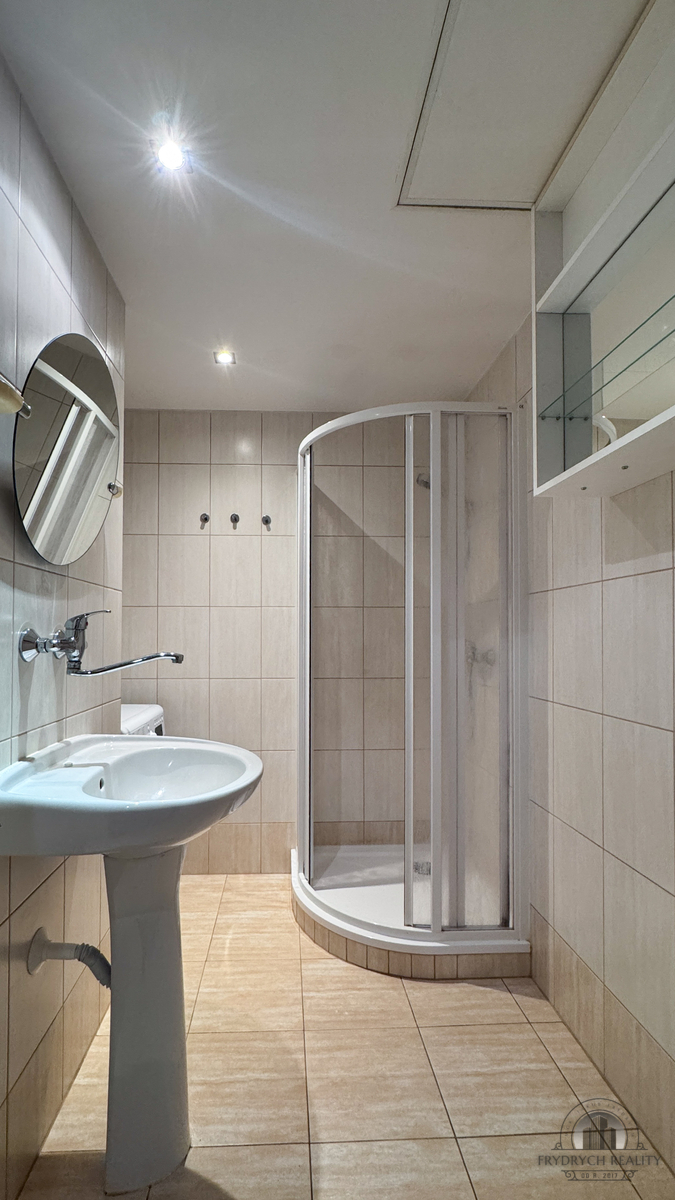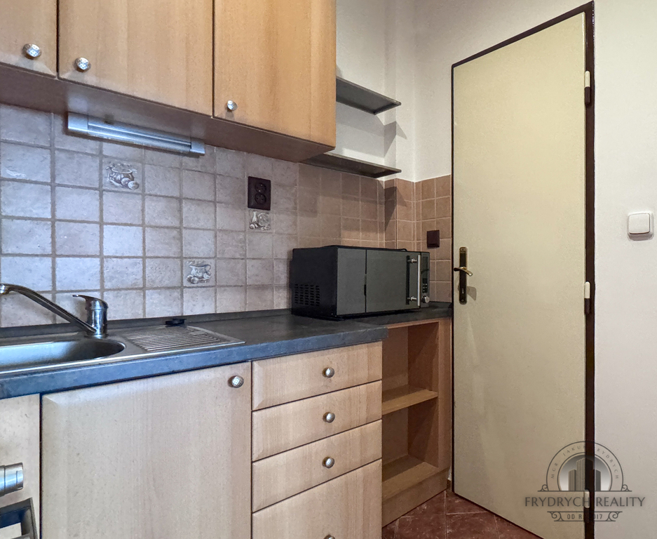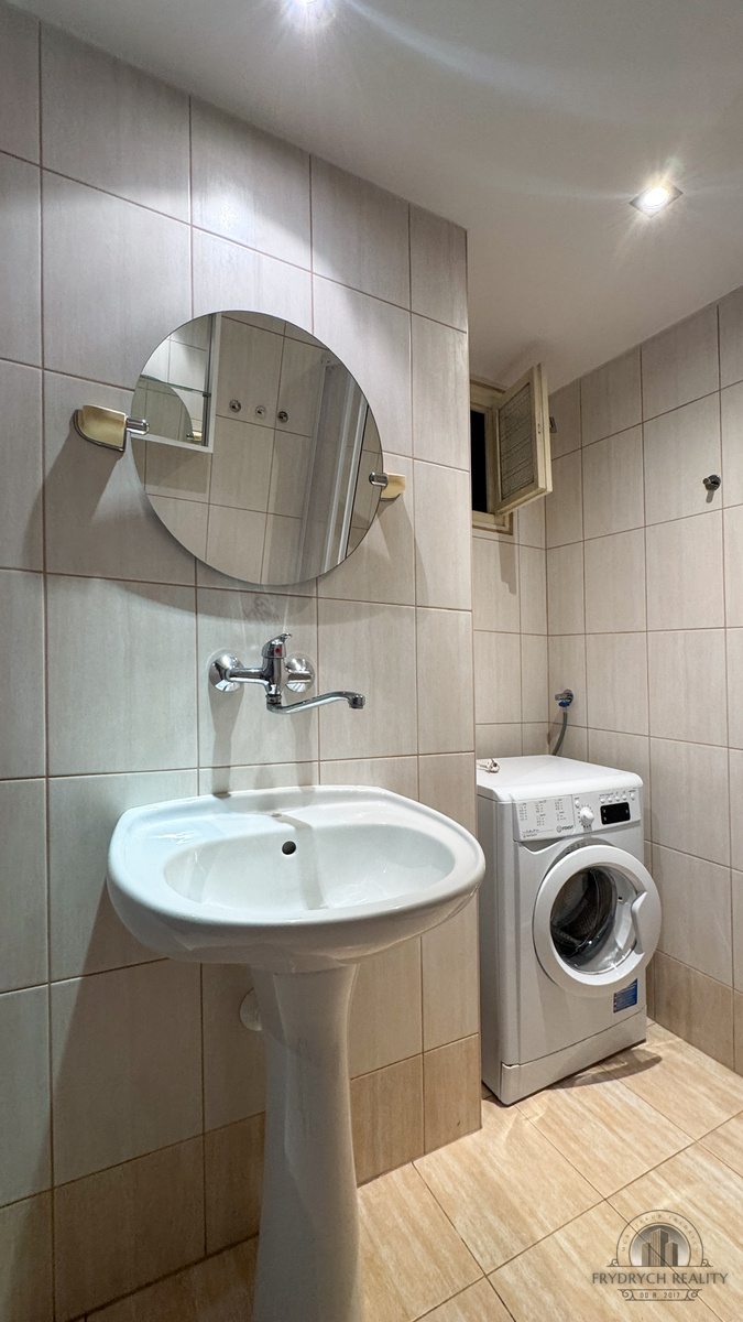Byt velikosti 30 m² procházel průběžně renovací - má kuchyňskou linku mimo hlavní místnost koupelnu s pračkou a oddělenou toaletu.