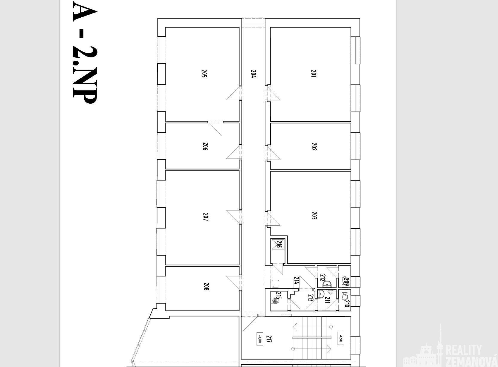 V případě potřeby lze pronajmout i další kancelář na patře o výměře 28 m2 a případně 13 m2.
