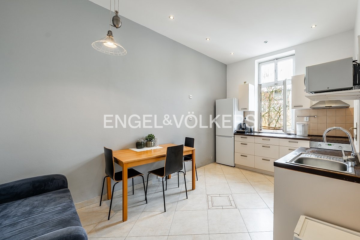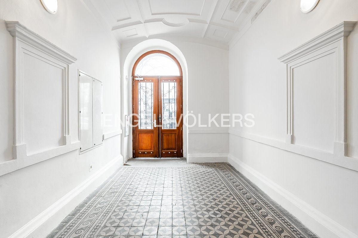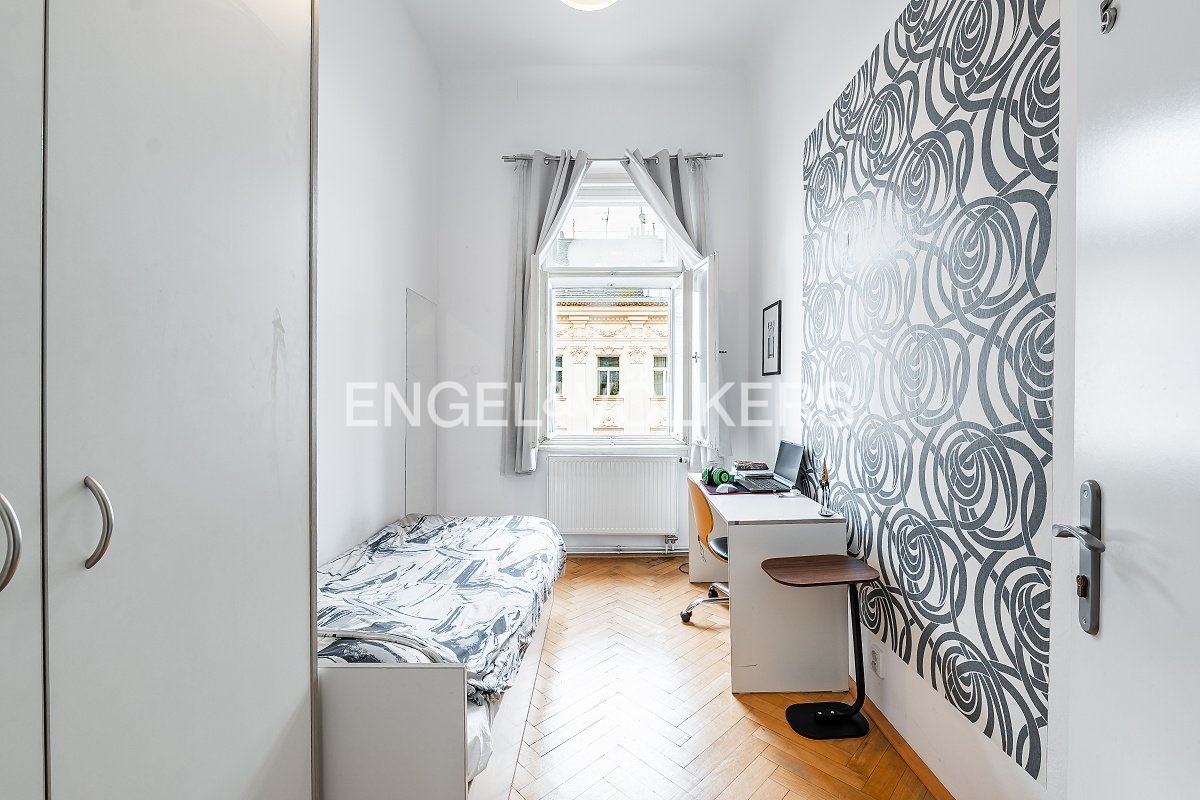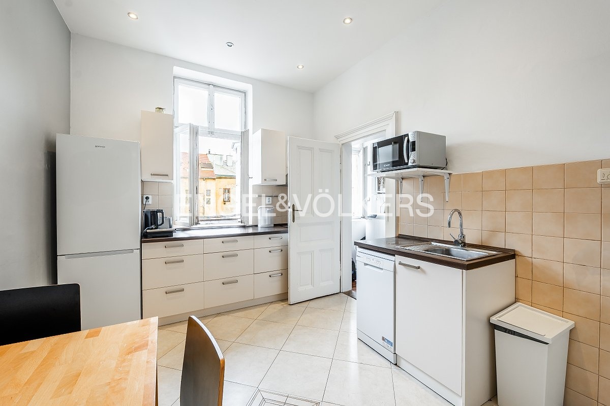 Byt prošel rekonstrukcí v roce 2001 a v roce 2015 byl dispozičně upraven do současného řešení. V původní dispozici 3+1 zaujmou impozantní stropy výšky 3,7 m, zachované původní parkety a interiérové dveře – prvky, které dodávají prostoru nezaměnitelný charakter. Pro účely pronájmu je byt aktuálně uspořádán jako 6+1 se dvěma koupelnami.