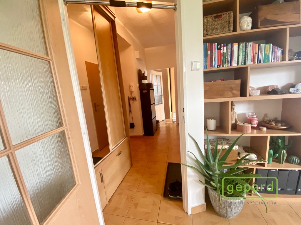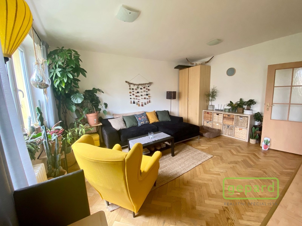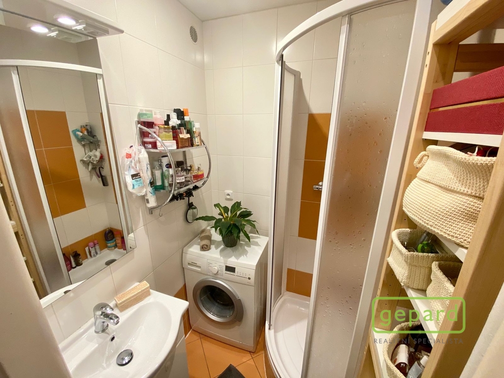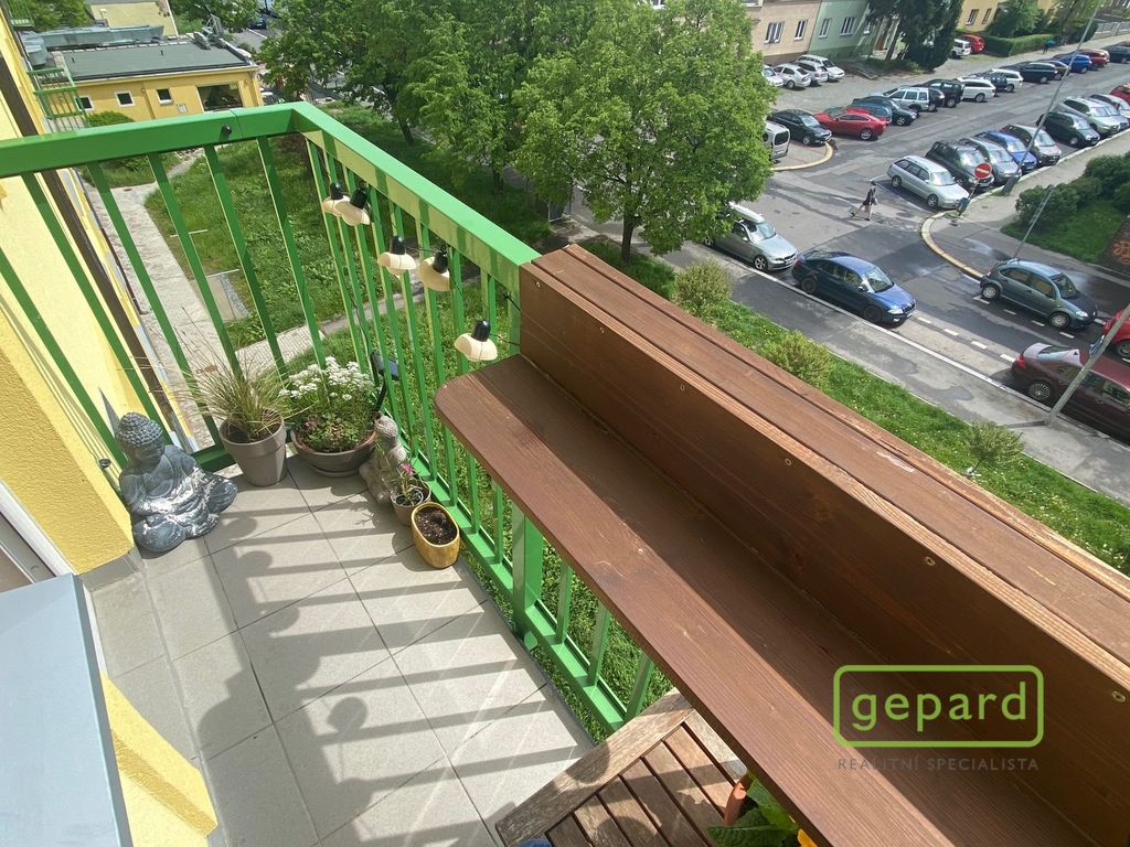 Bytová jednotka je umístěna ve 3.patře cihlového domu s výtahem a okny orientované na jižní stranu, což uvítají všichni ti, kteří mají rádi dostatek světla a sluníčka. Byt je z hlediska dispozic dobře řešený a nabídne vstupní předsíň, ze které je umožněn vstup do ložnice, dále samostatné WC, koupelny se sprchovým koutem a poté do prostorné obývací části s navazujícím kuchyňským koutem a vstupem na lodžii. Byt se pronajímá částečně zařízený, v ložnici zůstává velká šatní skříň s dostatečným úložným prostorem, v kuchyni na míru zhotovena vkusná kuchyňská linka, kde máme umístěnou vestavěnou lednici s mrazákem, el. varnou desku, troubu, myčku, digestoř. V obývacím pokoji a ložnici jsou podlahy pokryty renovovanými parkety, vstupní předsíň, kuchyň, koupelna a toaleta pak světlá dlažba. Vytápění je řešeno centrálním plynovým kotlem.