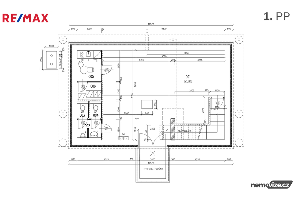 V podzemním podlaží o výměře 102 m² se aktuálně nachází servisní a skladové zázemí. Toto podlaží je přístupné vnitřním schodištěm a výtahem, který propojuje podzemní podlaží s přízemím, a zároveň je zde možnost zásobování zvenku pomocí nákladní hydraulické plošiny.