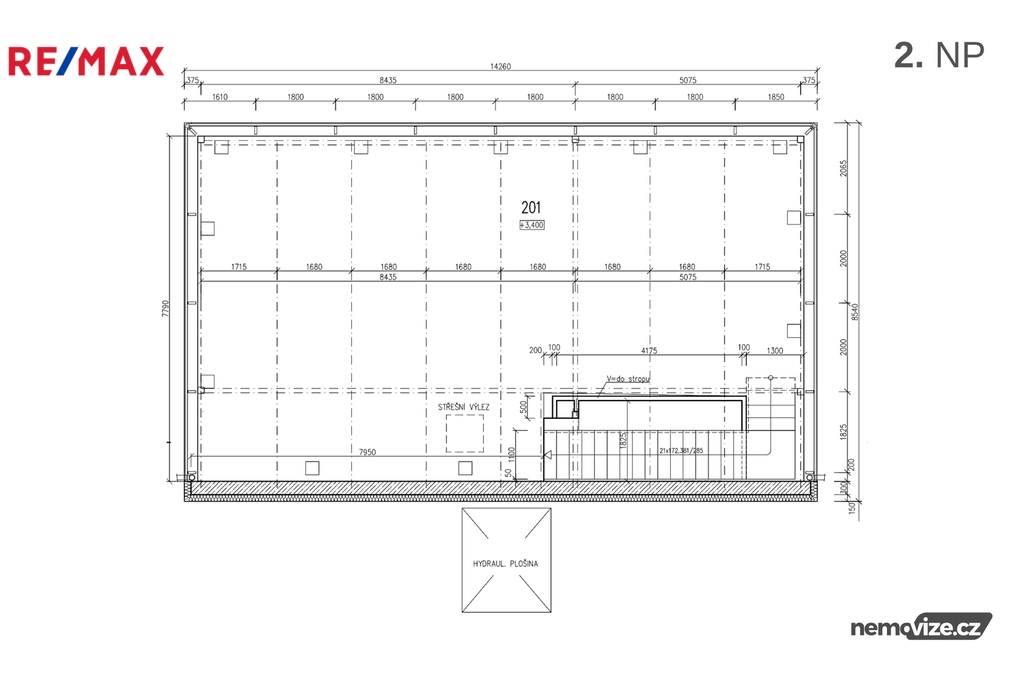 Druhé nadzemní podlaží, rovněž o výměře 121 m², je nyní využíváno jako další prodejní prostor, nicméně celý objekt lze dispozičně upravit dle potřeb nového nájemce. Prostory je možné využít jako showroom, sklad, kanceláře, servisní zázemí nebo je kombinovat podle konkrétního provozu.