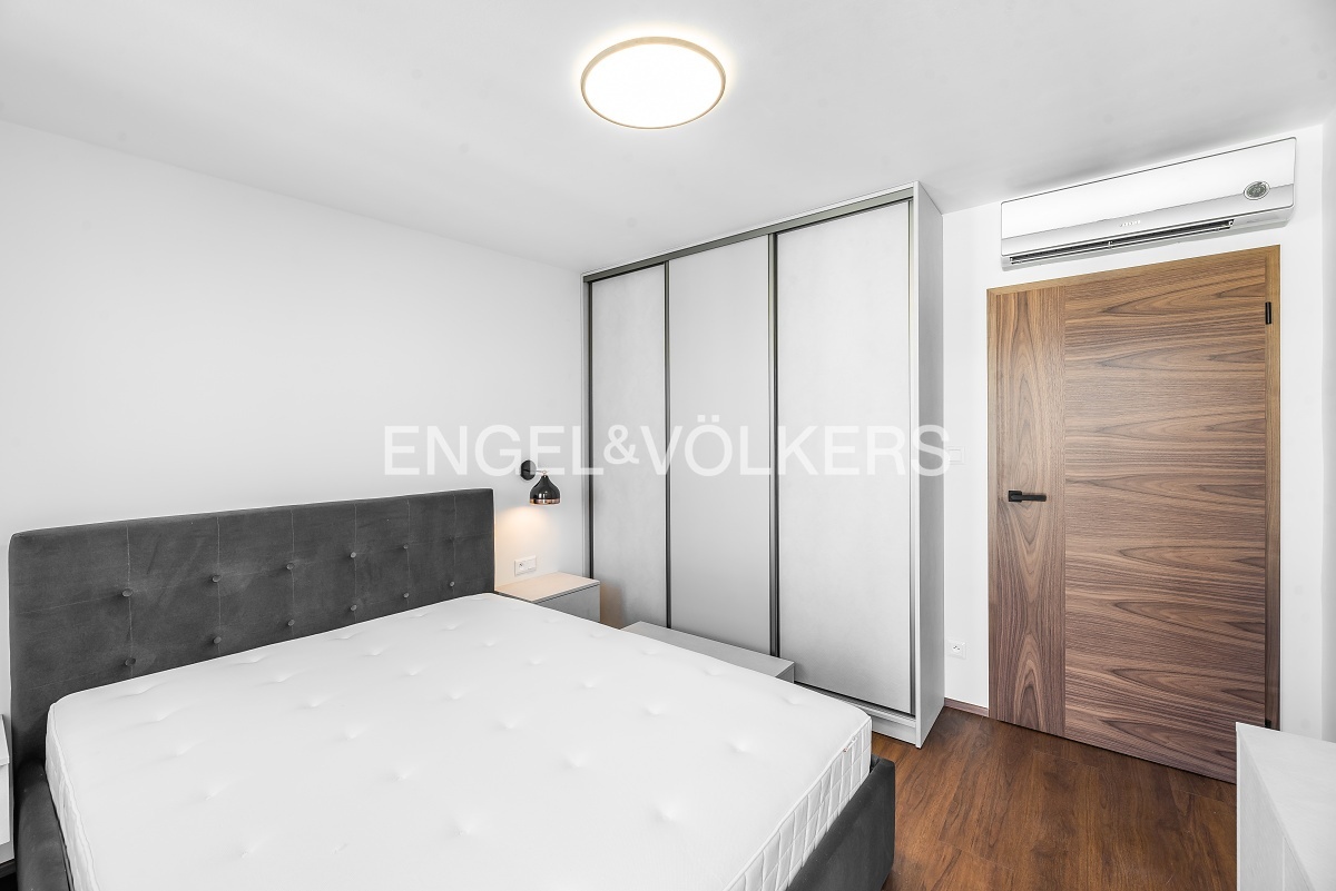 Všechny místnosti jsou klimatizované. K bytu náleží sklepní kóje a parkovací stání ve vnitrobloku na 3 roky s plně automatizovaným vjezdem. Užitná plocha bytu je uváděna po odečtení šikmin.