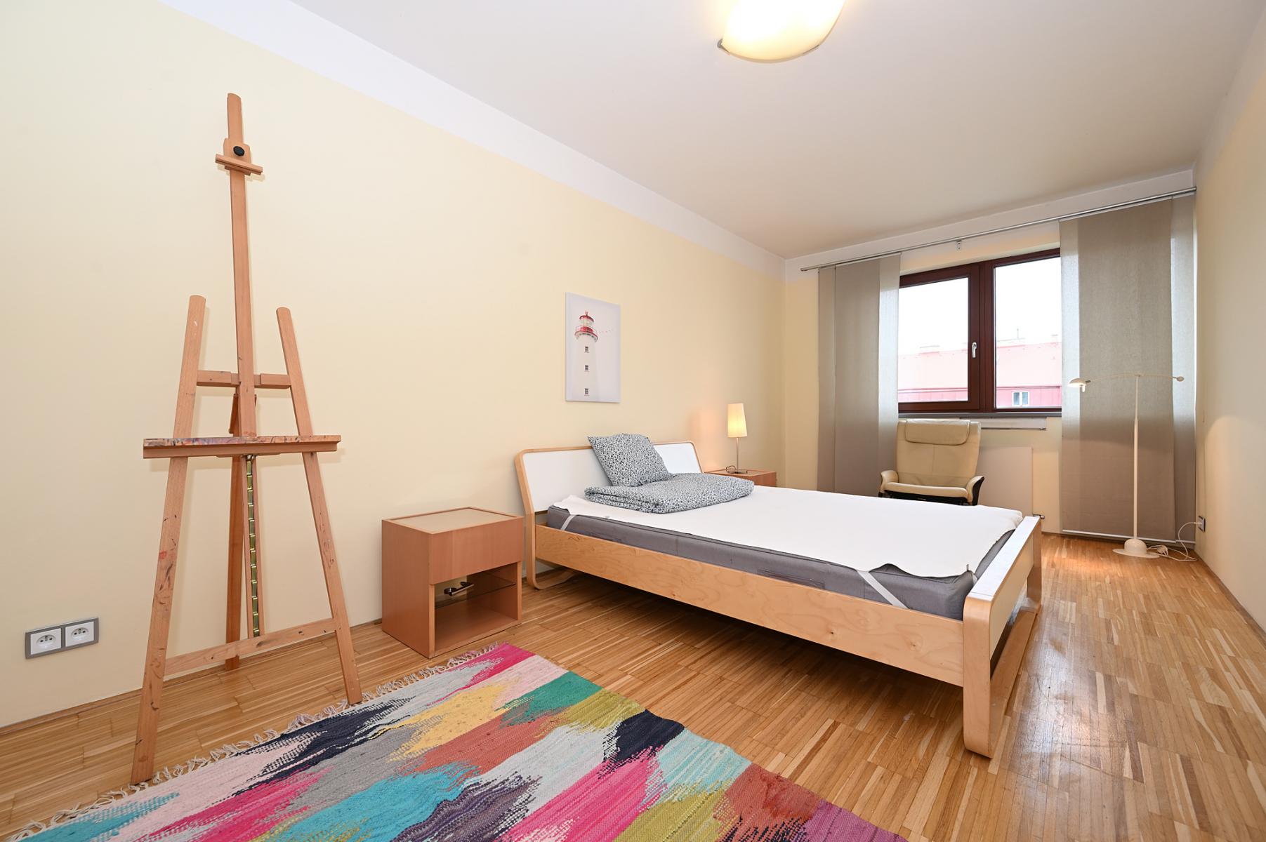 Byt je kompletně zařízen nábytkem. V komoře je umístěna pračka a odděleně sušička. V koupelně je vana, WC zvlášť.
