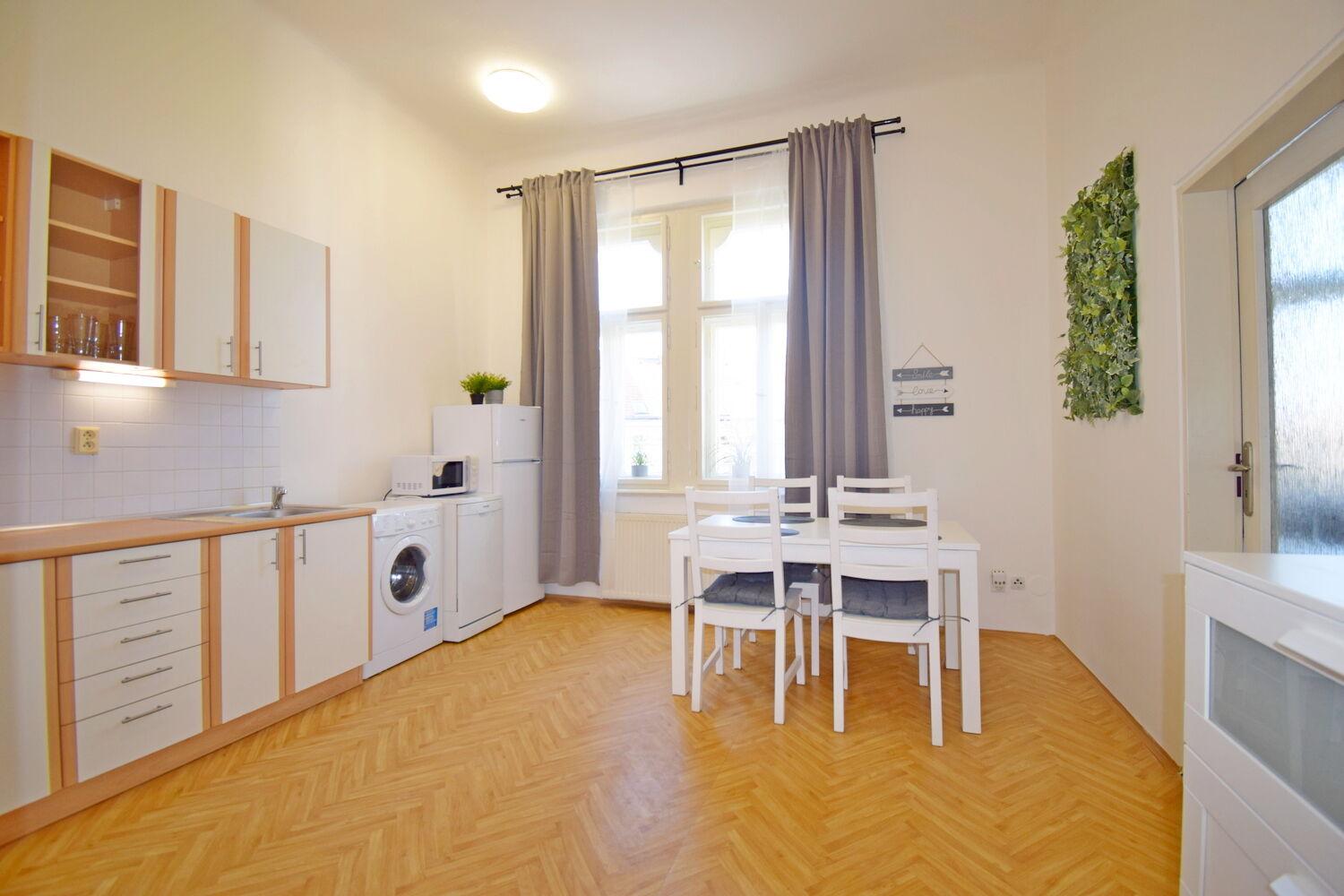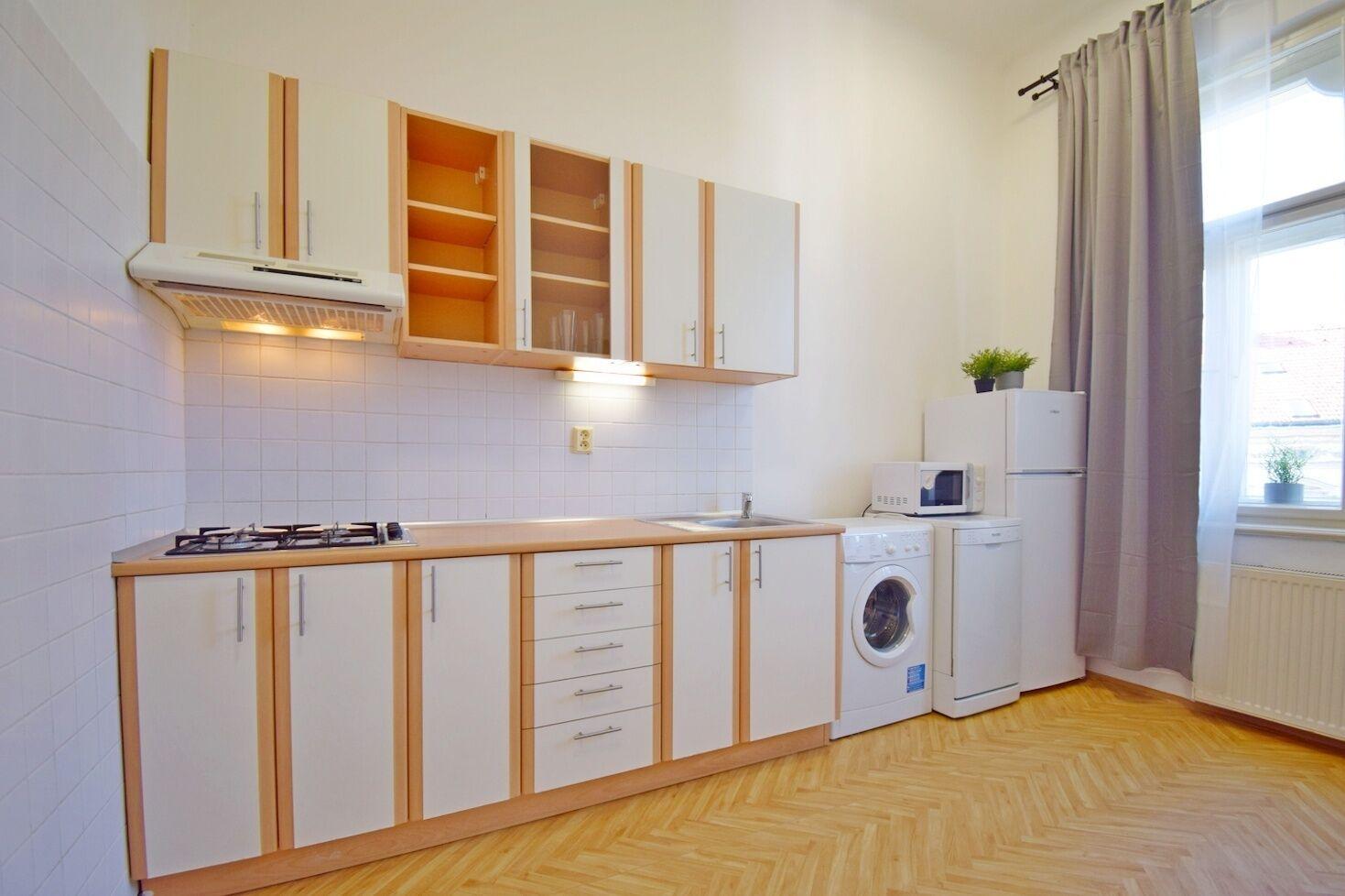 Velmi hezký, kompletně zařízený 1+1 ve 3.patře zrekonstruovaného domu přímo u stanice metra Hradčanská. Byt má průchozí, kompletně vybavenou kuchyni s jídelním koutem a prostorný pokoj dispozičně zařízený jako ložnice a obývák, z něhož je výhled do ulice Pod Kaštany. Koupelna se sprchovým koutem je společná s WC. Na podlahách jsou parkety a dlažba. Perfektní občanská vybavenost a dopravní dostupnost. K nastěhování ihned.