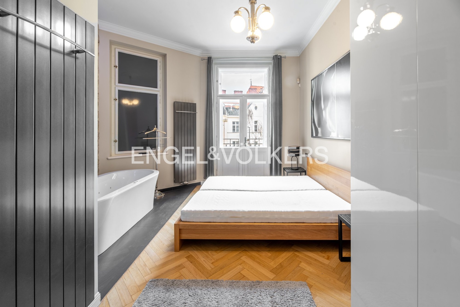 K okamžitému pronájmu nabízíme stylový, plně zařízený byt s dispozicí 2+1, situovaný v jedné z nejprestižnějších lokalit Prahy – v Široké ulici v těsné blízkosti Pařížské ulice a pár kroků od Staroměstského náměstí.