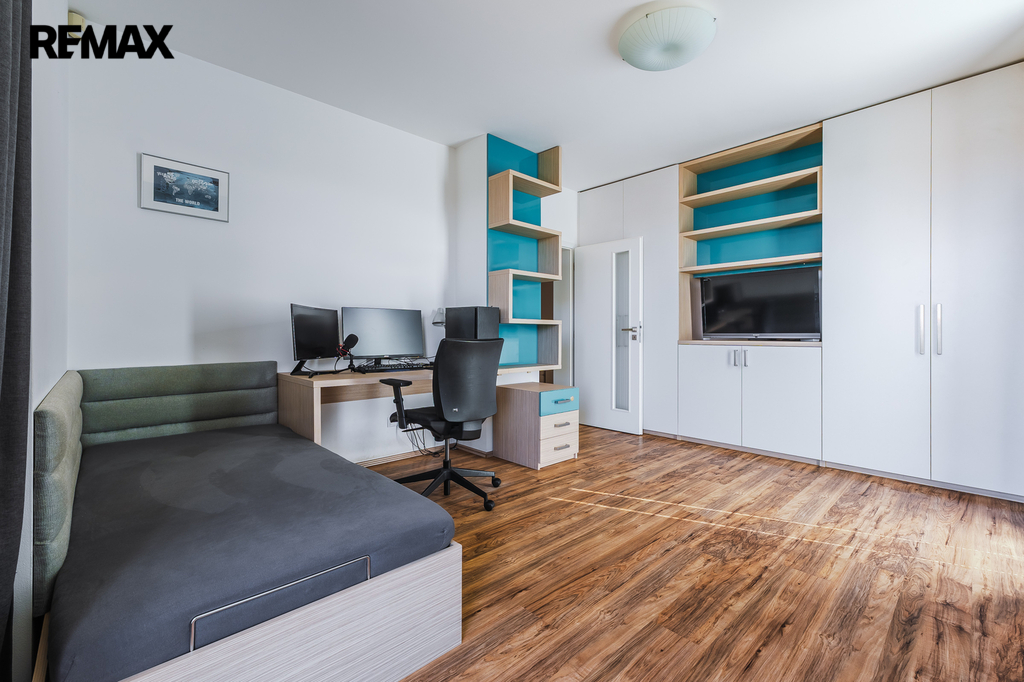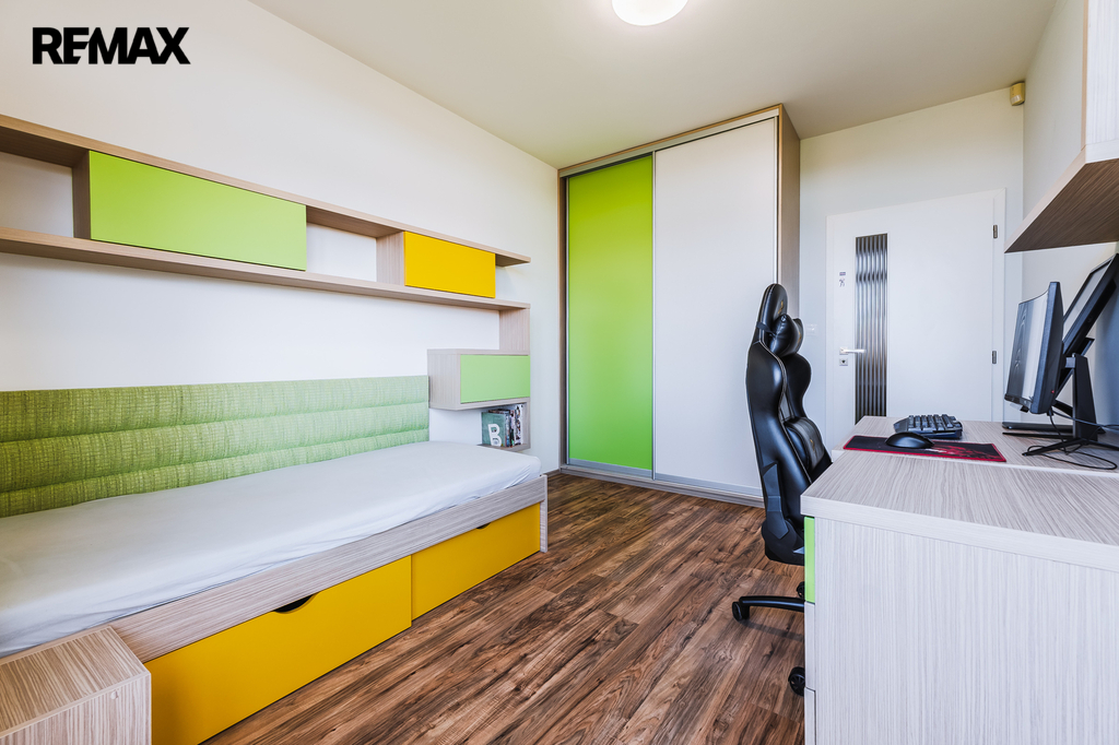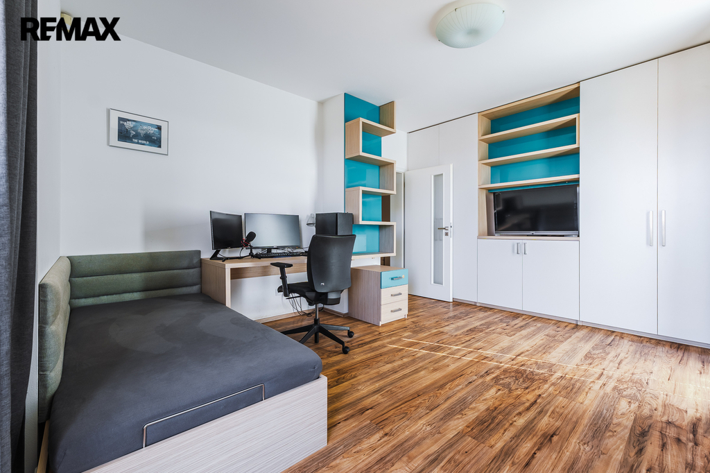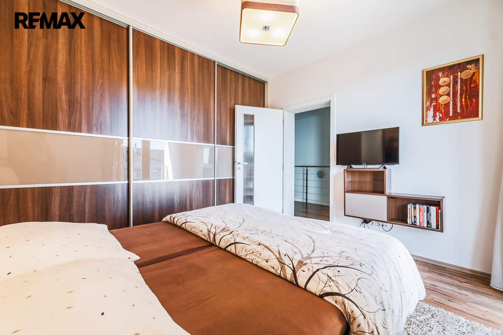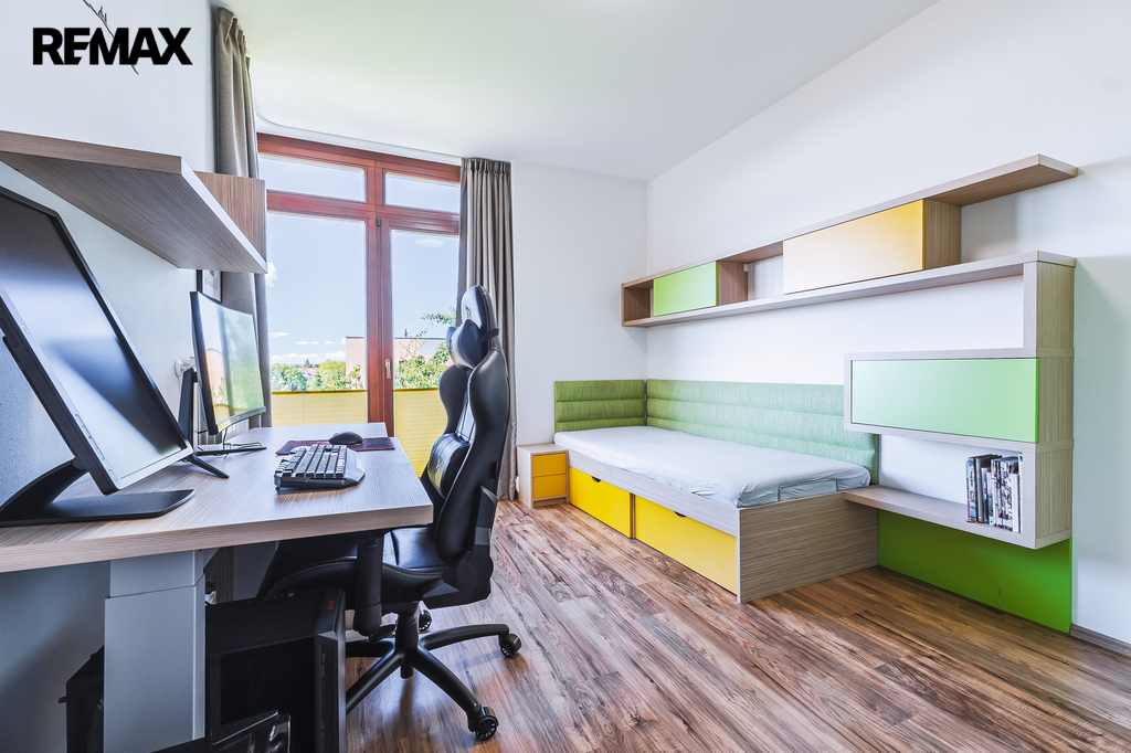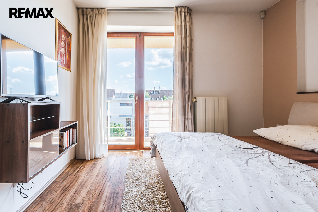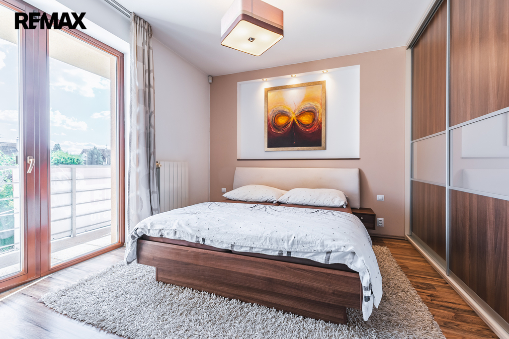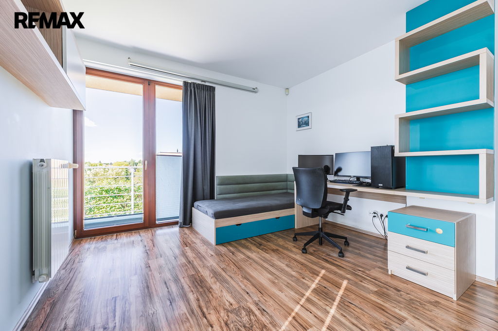 Ložnice se vstupem na balkon a vestavěnou skříní