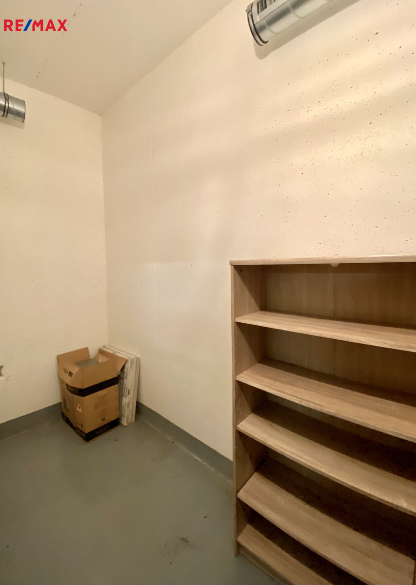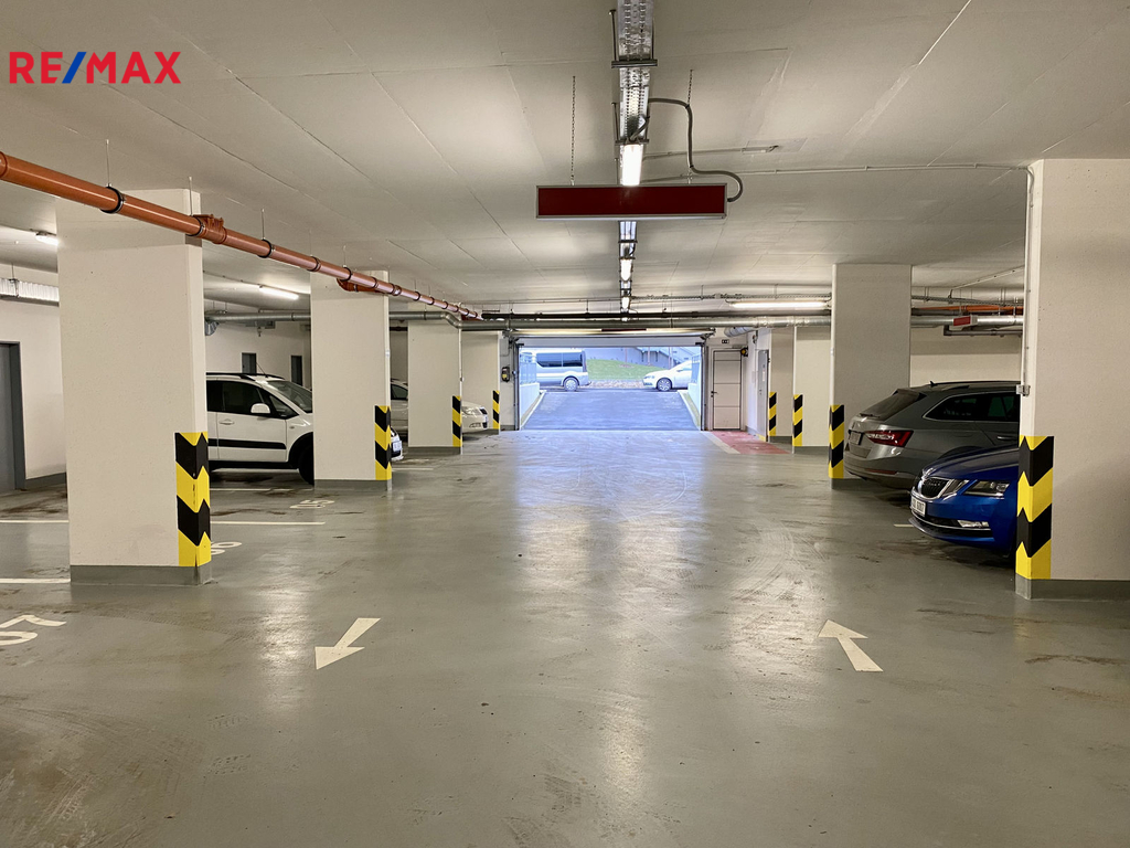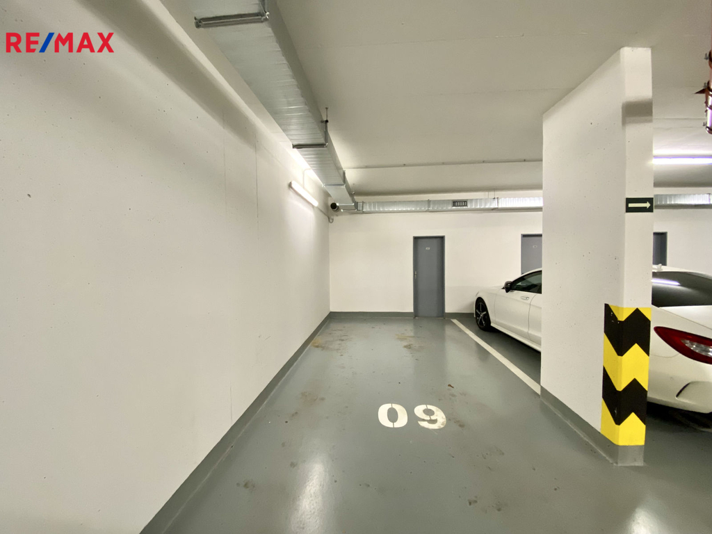K bytu náleží vnitřní parkovací stání a sklep/komora (o výměře 3,6 m2), který je umístěný přímo za parkovacím stáním.