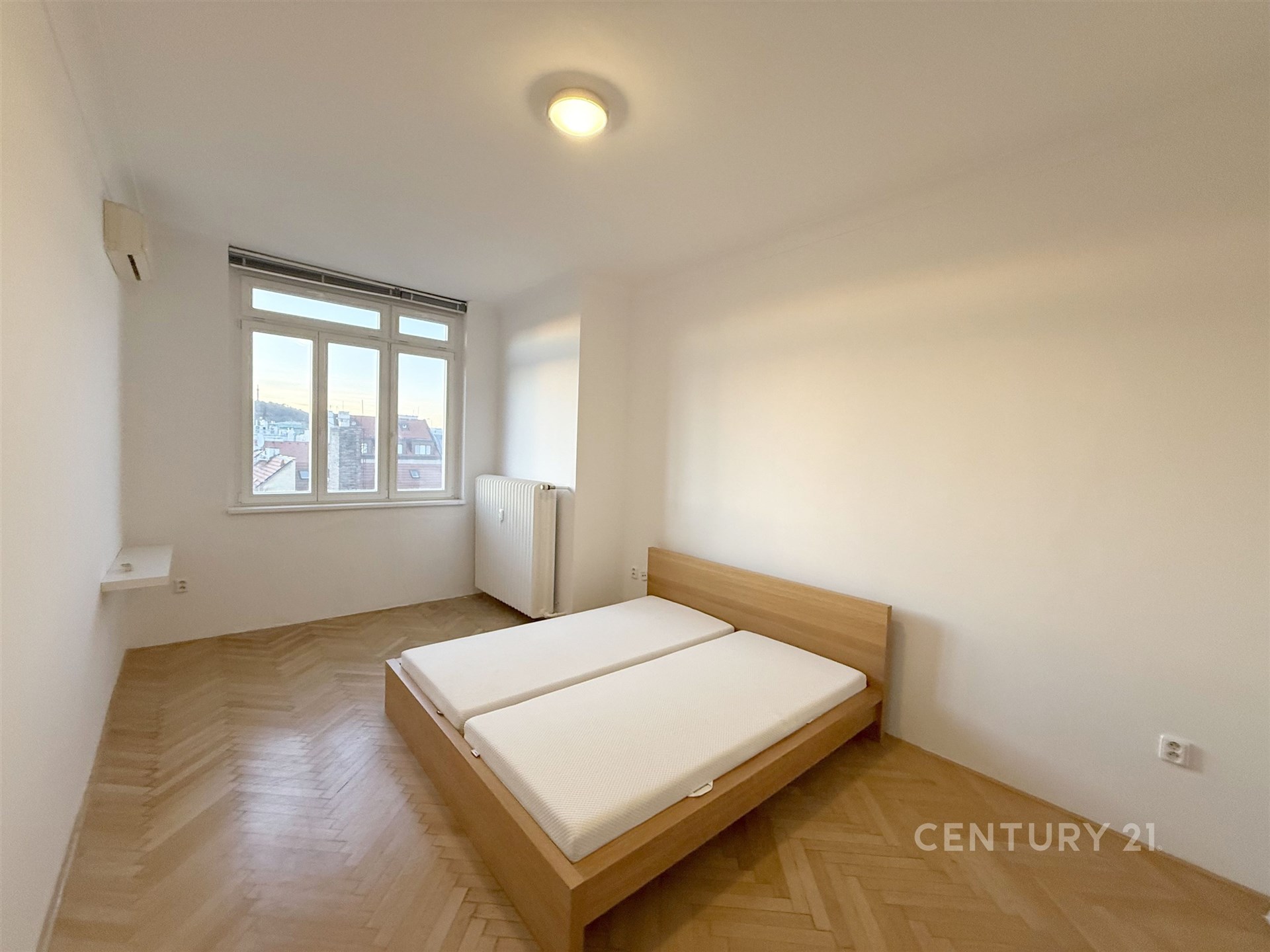 Dovoluji si Vám nabídnout pronájem velkého, slunného a extrémně tichého bytu s dispozicí 4+1 nacházejícího se v 6. patře činžovního domu. Dvě terasy nabízejí panoramatický výhled na dominanty Prahy – Petřín na jedné straně a budova Národního muzea na druhé. Dispozice zahrnuje tři velkorysé samostatné ložnice, které jsou neprůchozí a zajišťují tak maximální soukromí. Jedna z ložnic je vybavena vestavěnou knihovnou přes celou stěnu.