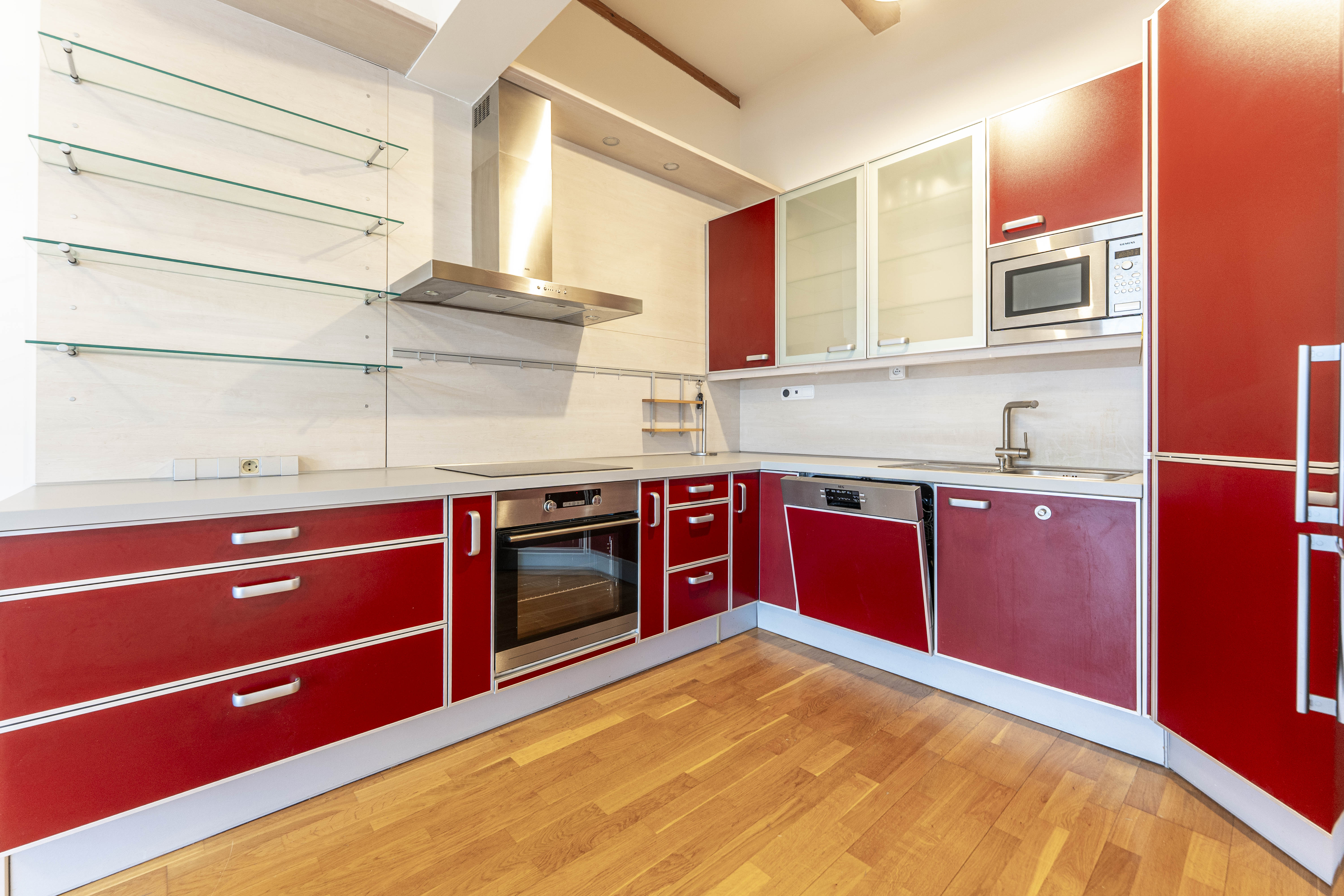 K dispozici všechny spotřebiče a vybavení jak možno vidět na fotografiích, v obývacím pokoji je klimatizace. K bytu se pronajímá sklep a garážové parkovací stání, obé již v ceně.