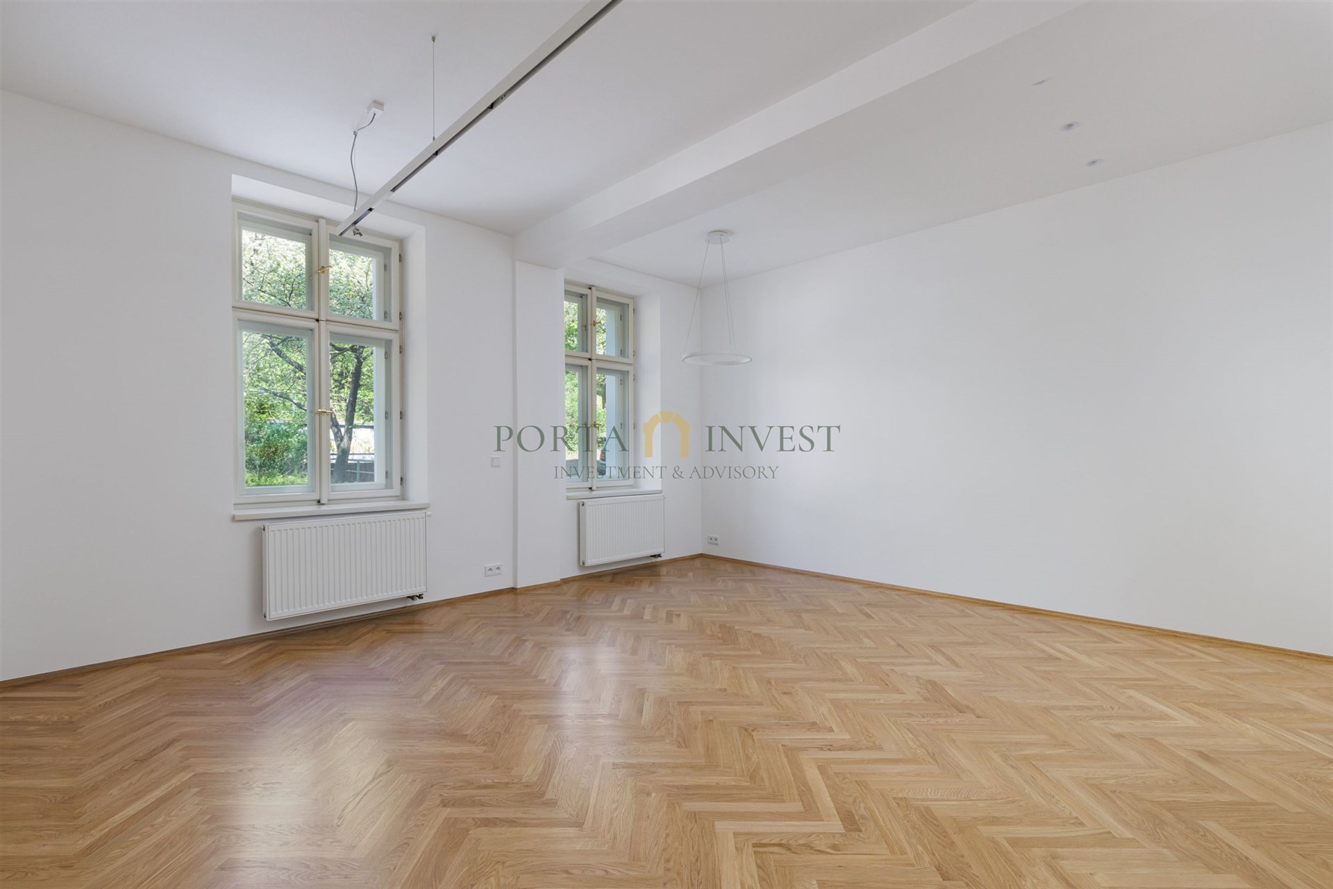 • úchvatný obývací pokoj s výhledem do parku Folimanka
