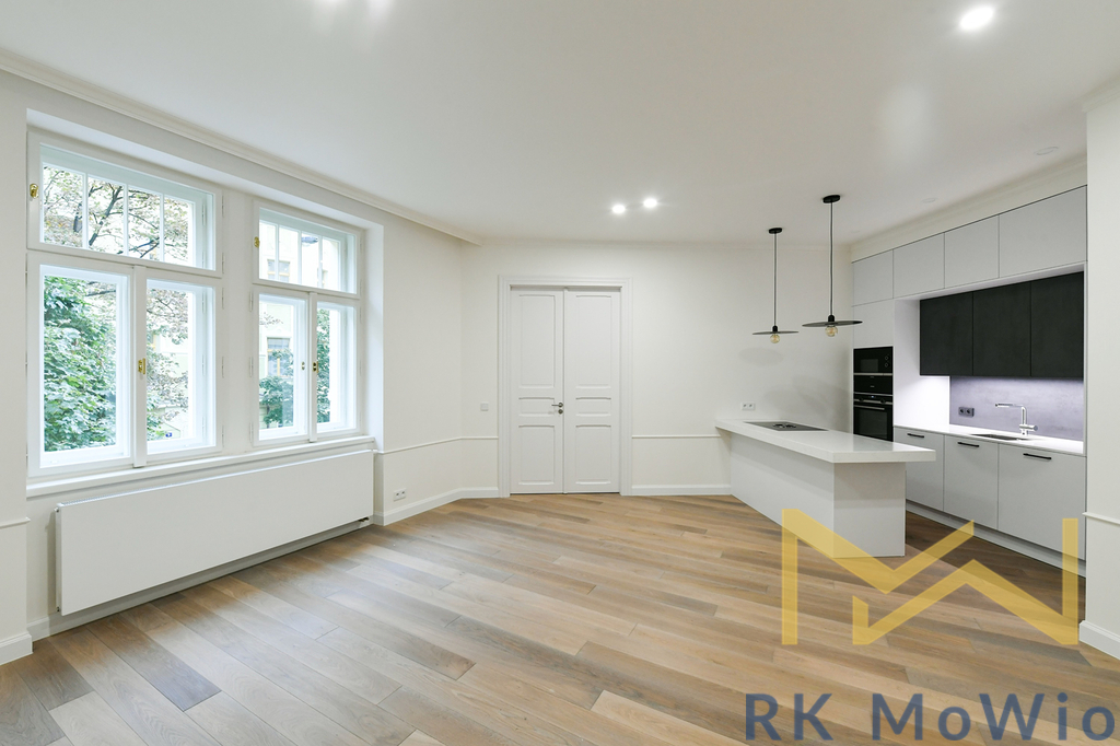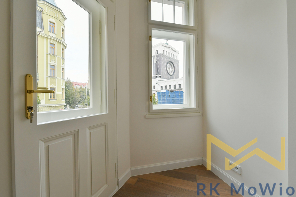 Nabízíme k pronájmu prostorný, luxusní byt č. 6 s dispozicí 4+kk s podlahovou plochou 118 m2 a terasou o výměře 2 m2, umístěný v 1. patře (2. nadzemní podlaží) secesní budovy s výtahem na náměstí Jiřího z Poděbrad, v těsné blízkosti oblíbených Riegrových sadů. Byt se nachází v prestižní lokalitě s vynikající dopravní dostupností do centra města.