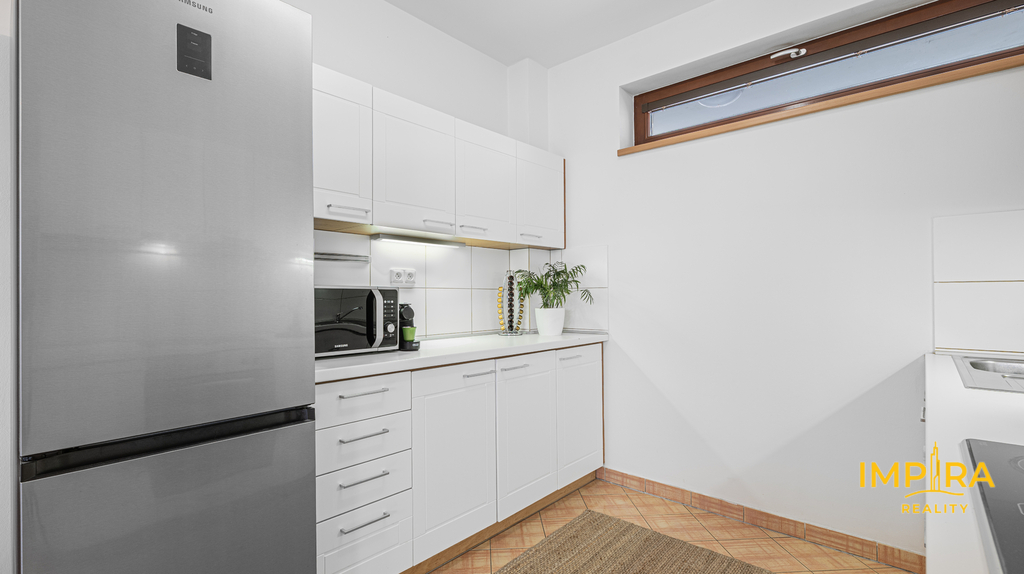 Kompletní vybavení: Byt je plně zařízen nábytkem včetně nové pračky a sušičky. Stačí se jen nastěhovat.