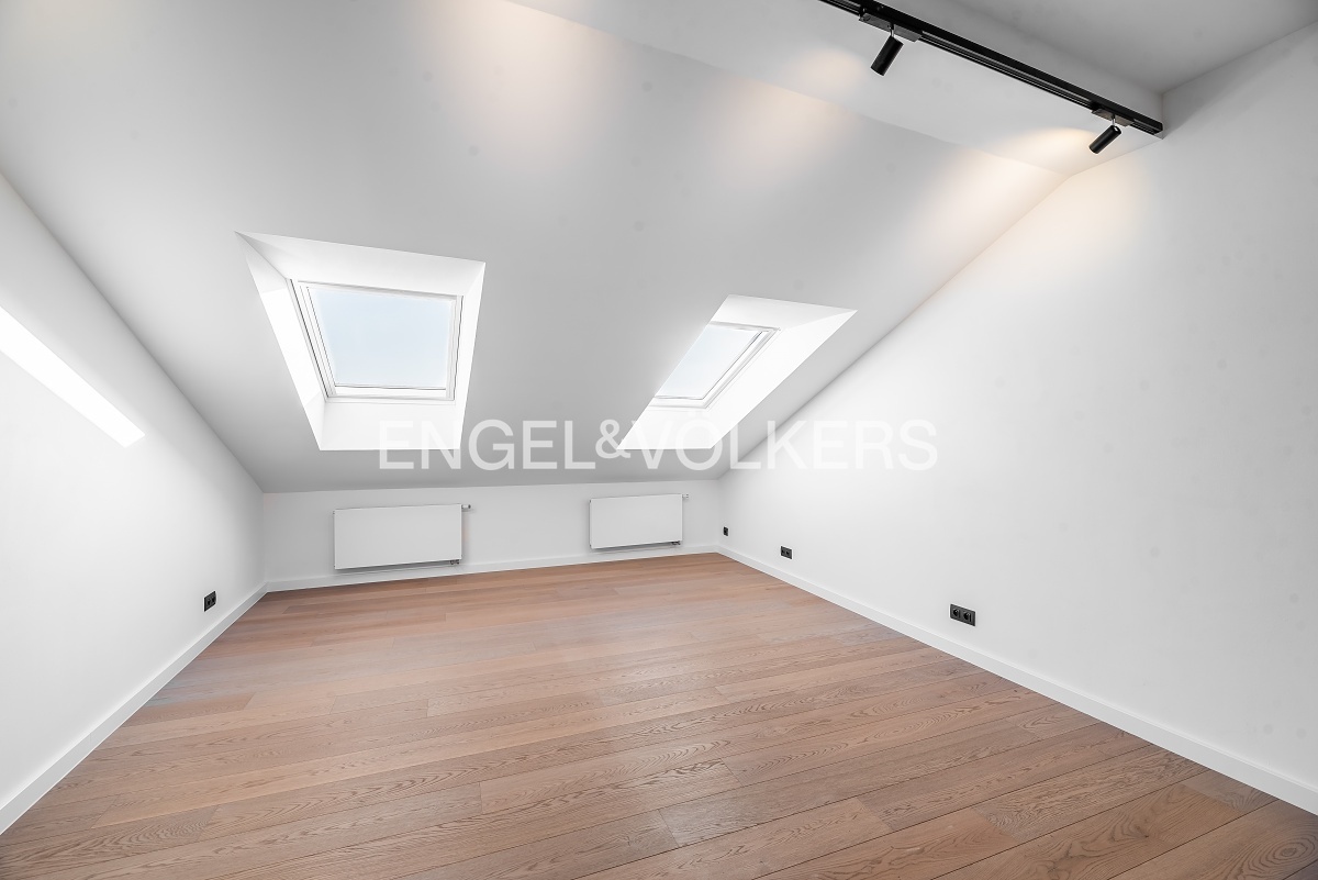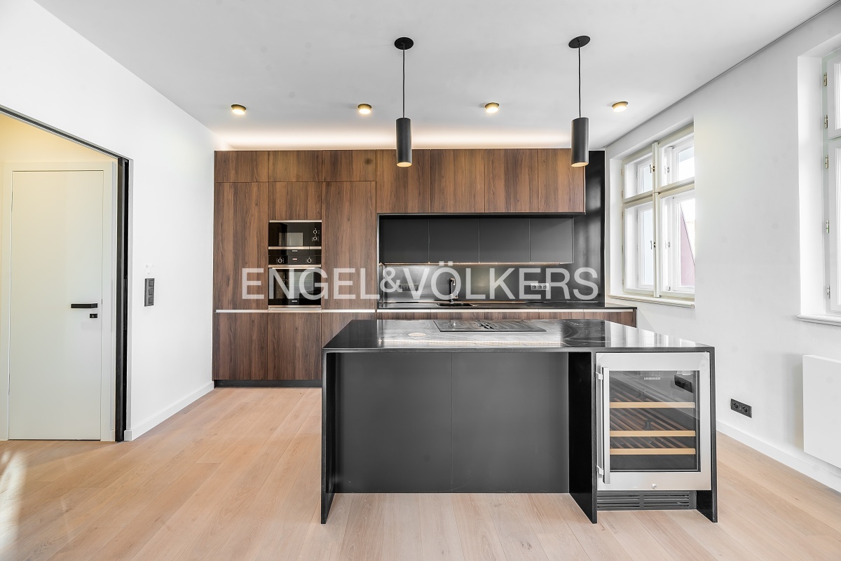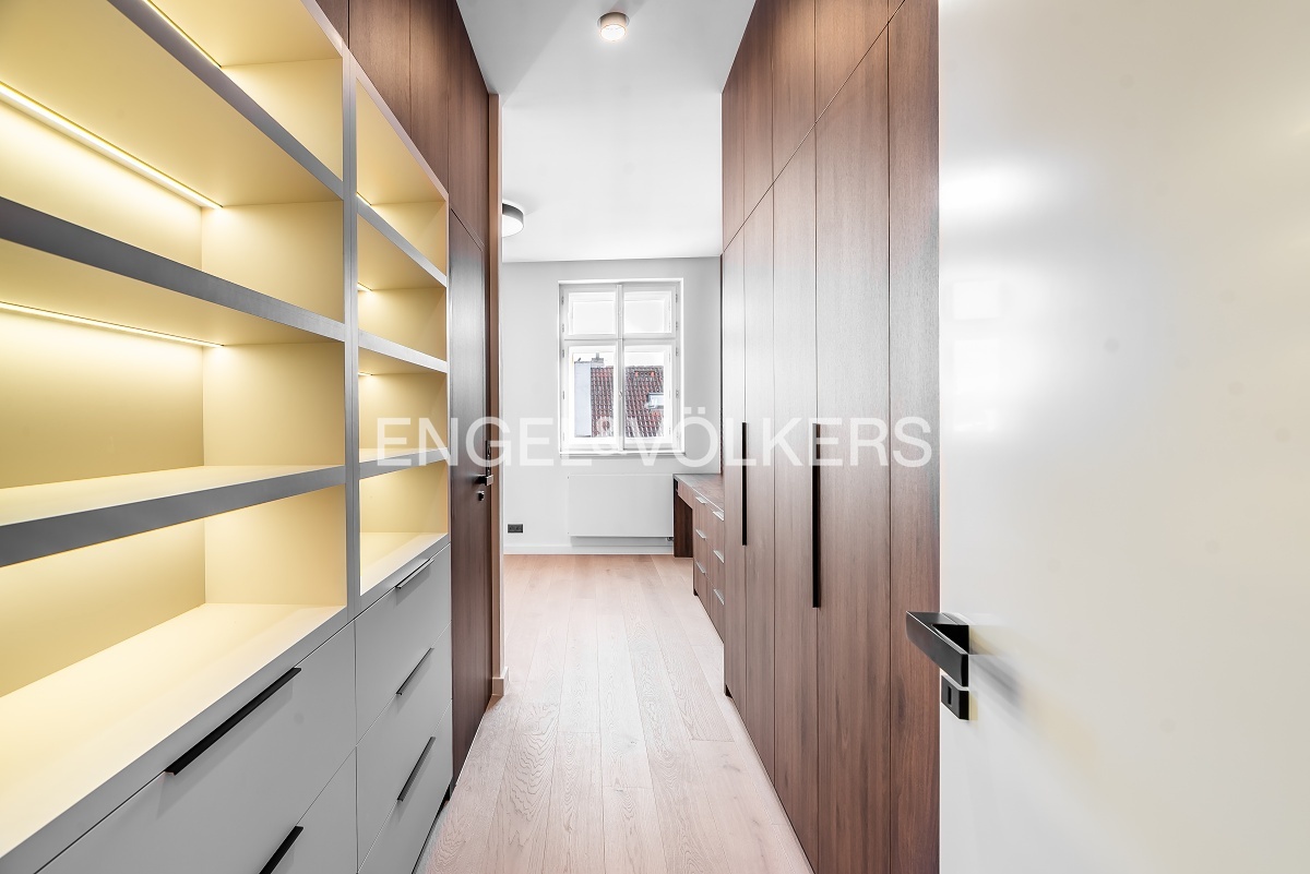 Celý dům i byty jsou po nadstandardní rekonstrukci, při které se dbalo na zachování původních prvků a vytvoření komfortního, moderního bydlení. Moderní a vzdušná dispozice bytu, kdy se ve vstupním podlaží nachází prostorný obývací pokoj s krbem, plně vybavenou kuchyní Gemadecor, master bedroom s vlastní šatnou a koupelnou, technickou místností a toaletou pro hosty. Ve druhém privátním patře se nachází dvě samostatné ložnice s vestavěnými skříněmi, prostorná koupelna s vanou a sprchovým koutem, extra toaleta a terasa.