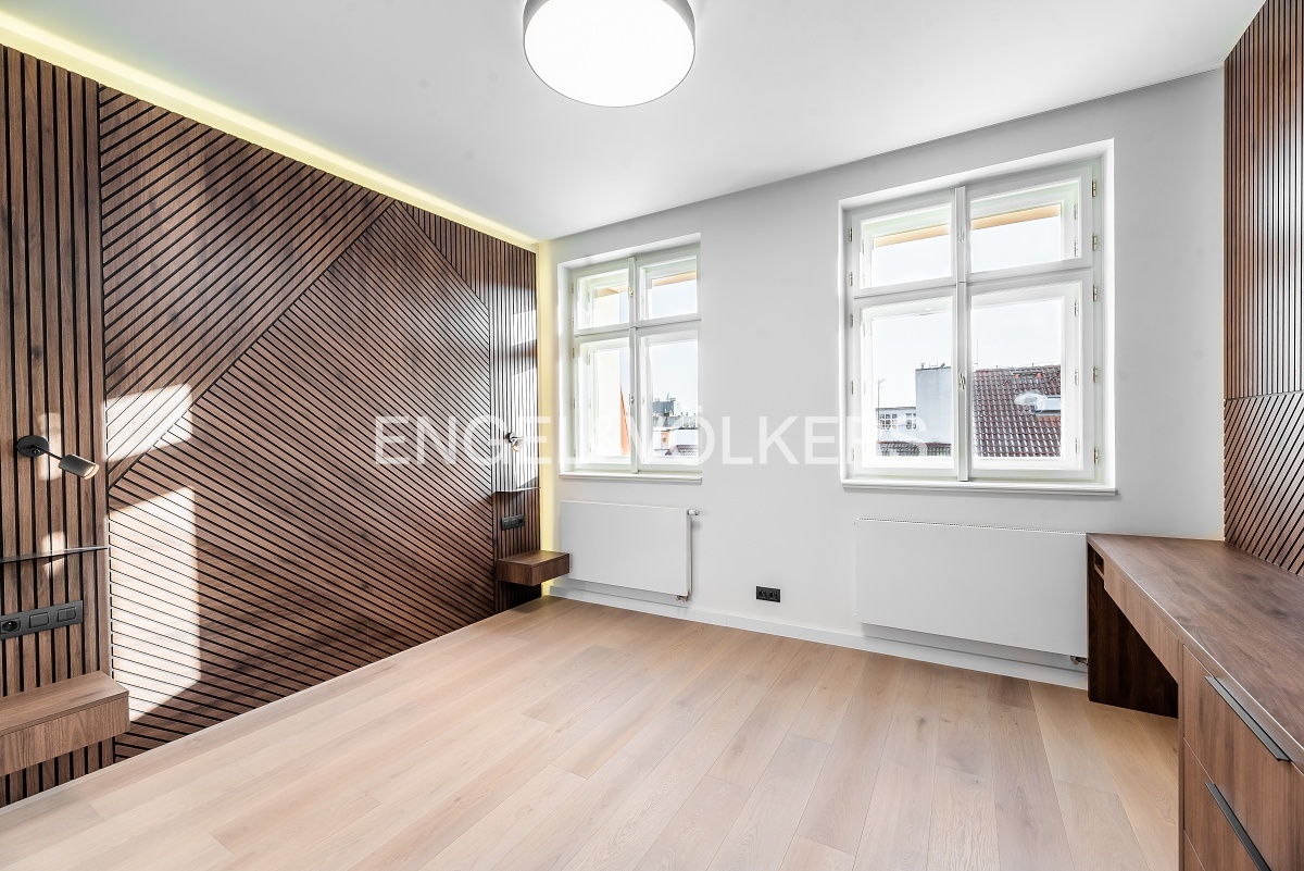 K pronájmu od 15.9.2025 je připravený exkluzivní klimatizovaný mezonetový byt 4+kk s terasou, který se nachází v posledním 5. - 6. nadzemním podlaží kompletně zrekonstruovaného domu s výtahem v blízkosti Petřína a OC Smíchov.