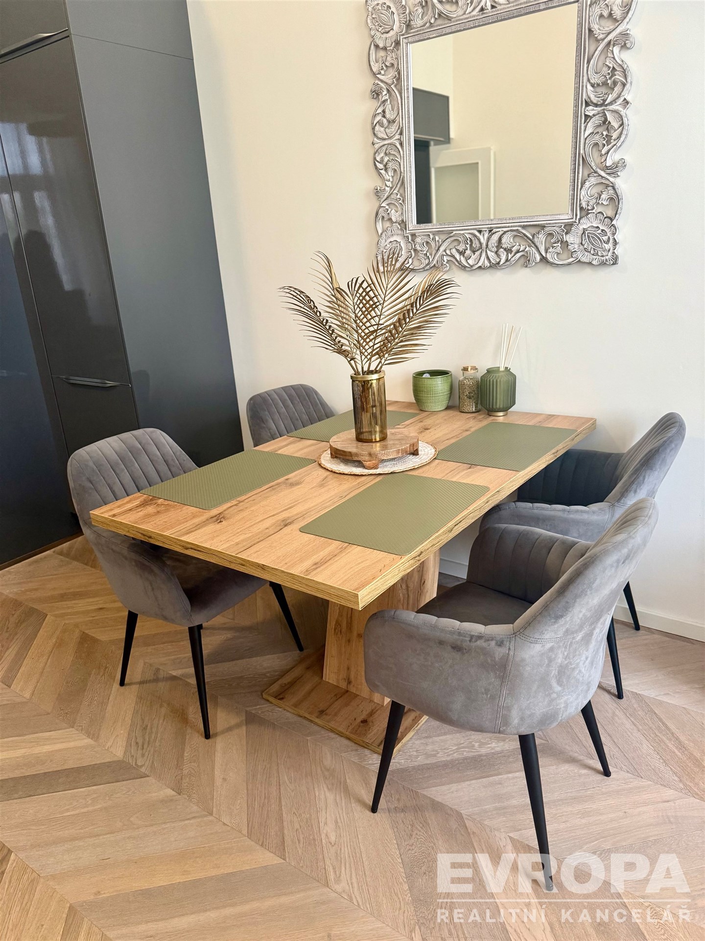 Byt je vybaven stylovým nábytkem, který odpovídá nejnovějším trendům v designu a poskytuje tak komfortní a stylové bydlení.