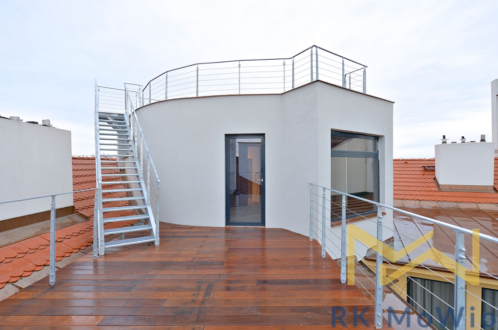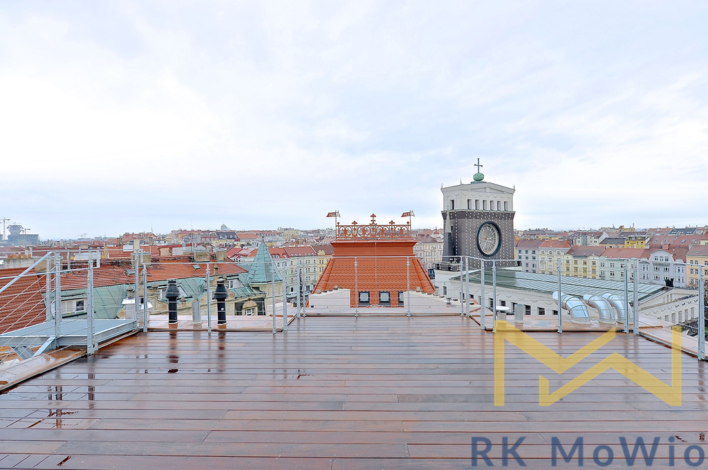 Unikátní bytová jednotka disponuje vstupní chodbou, vzdušným obývacím pokojem s kuchyňským koutem a jídelní částí, 1 ložnicí s vestavěnými skříněmi, 1 koupelnou (se sprchou a umyvadlem), oddělenou toaletu. Dominantou bytu je rozlehlá terasa přístupná z obývacího pokoje se schody na střešní terasu s panoramatickým výhledem. Vybavení bytu: kuchyňská linka včetně lednice s mrazákem, sklokeramické varné desky, digestoře, myčky a elektrické trouby; vestavěné skříně, pračka, sušička, vinotéka, klimatizace, příprava pro vysokorychlostní internet, dřevěné dubové podlahy, nová okna s dvouvrstvým sklem. K bytu je nutno pronajmout 1 parkovací stání za příplatek 6.500,- Kč/měsíc + DPH21% = 7.865,- Kč/měsíc.