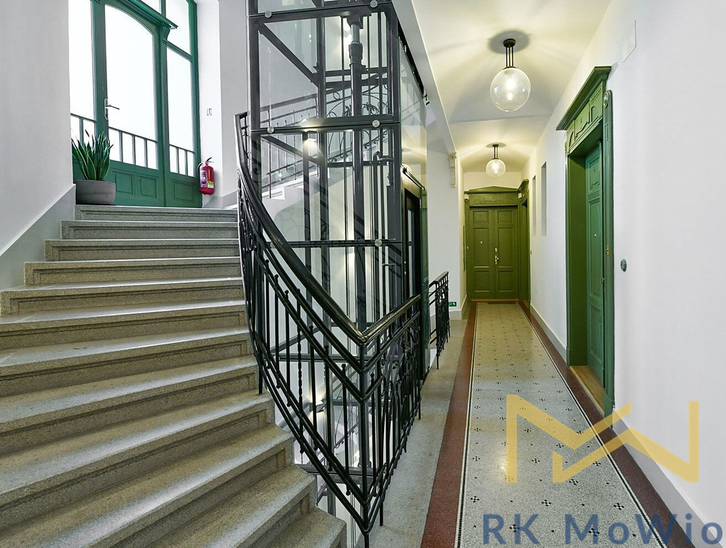 Nabízíme k pronájmu podkrovní byt bez nábytku, o dispozici 2+kk s podlahovou plochou 60 m² s 2 terasami (o výměře 40 m² a 60 m²), situovaný v 5. patře (6. nadzemní podlaží) zrekonstruované secesní budovy s výtahem, na náměstí Jiřího z Poděbrad na Praze 3, ve vyhledávané lokalitě Vinohrad.