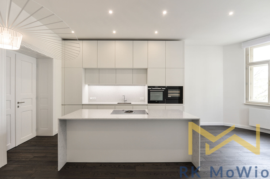 Nabízíme na pronájem nadstandartní, klimatizovaný zařízený byt č. 1, o dispozici 4+kk a ploše 137 m2, situovaný v 1. patře (2. nadzemní podlaží) zrekonstruované secesní budovy s výtahem v ulici Laubova na Praze 3 - Vinohrady.