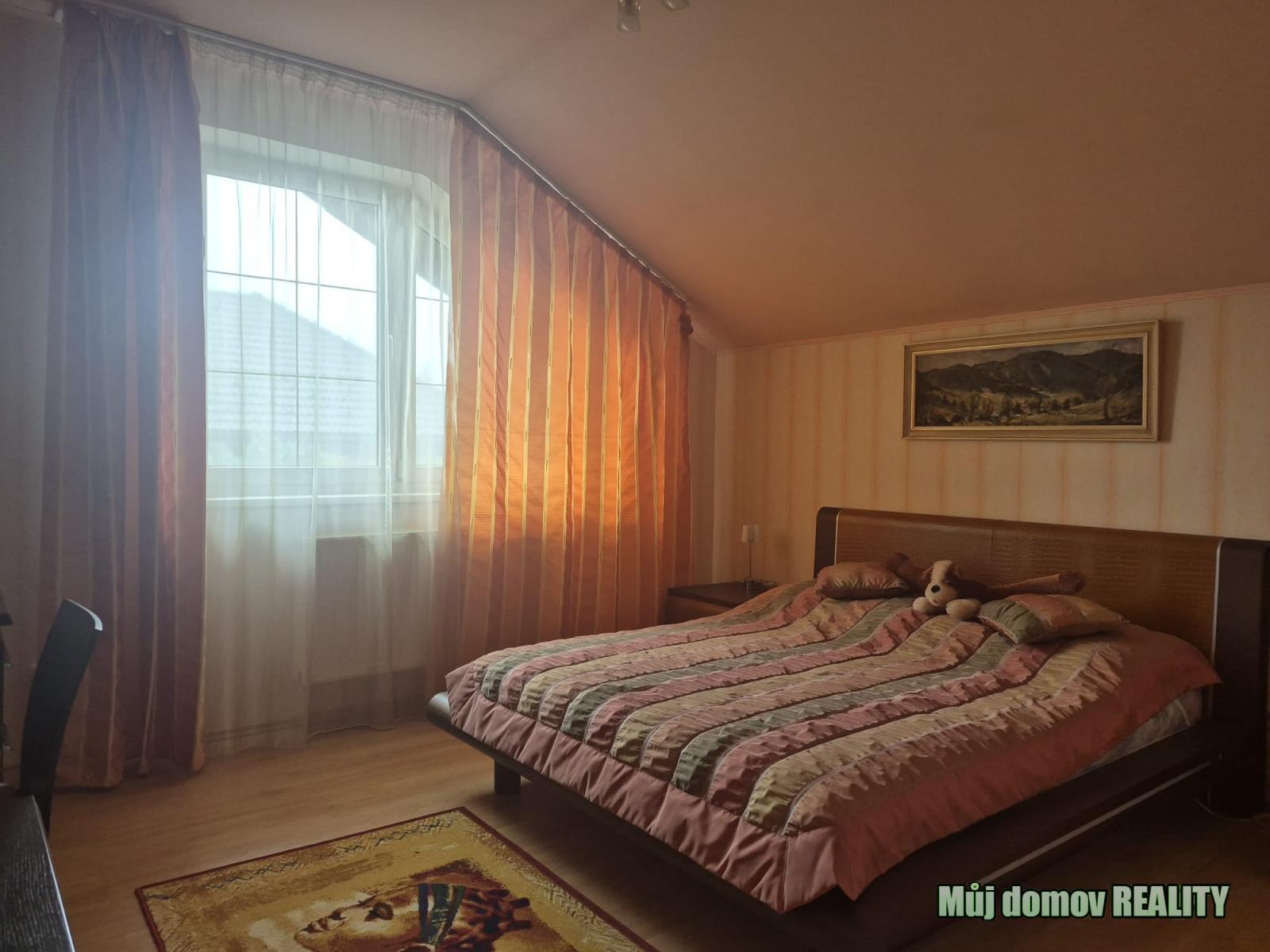 kvalitním masivním nábytkem. Klimatizace v obývacím pokoji a hlavní ložnici. Podlahy kombinují parkety, dlažbu a laminát.