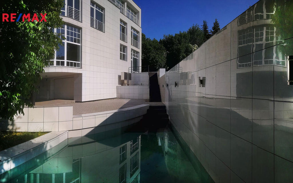 Třípodlažní vila o dispozici 5+kk a užitné ploše 323 m² (plus terasy) vyniká světlým obytným prostorem o 110 m² s výškou stropu 3,85 m. Obytná zóna navazuje na terasovou část s vyhřívaným bazénem (10×5 m) a okrasnou vodní plochou s přepadem.