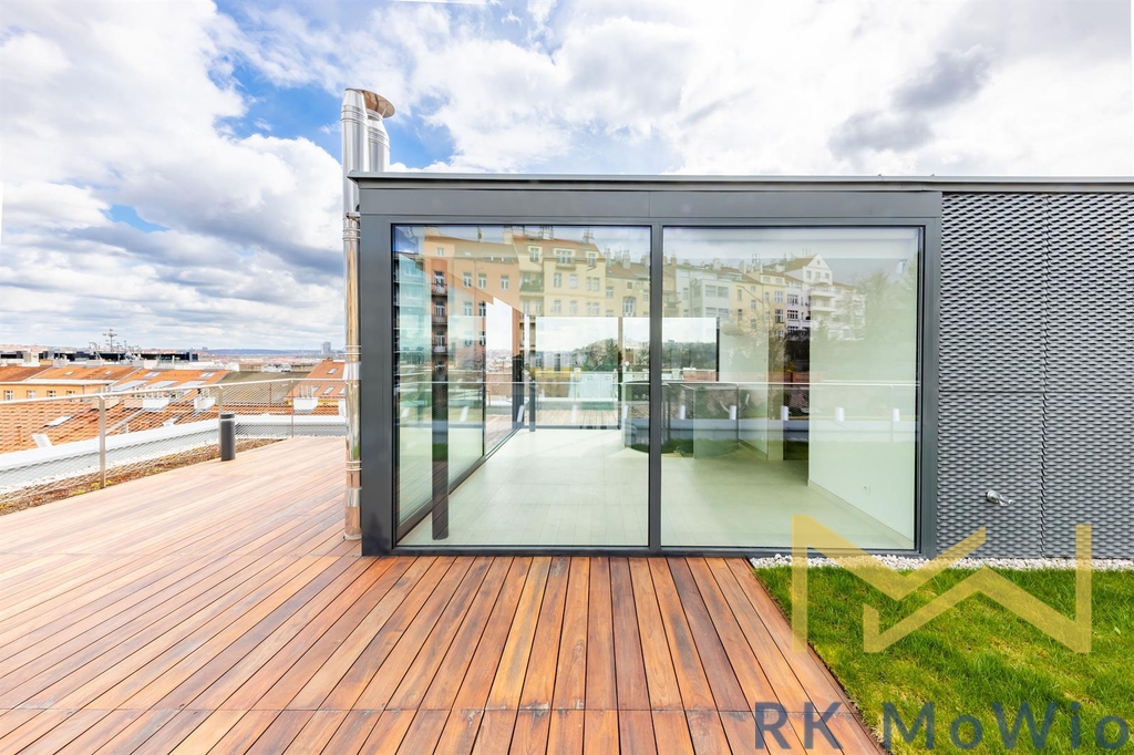 Nabízíme na pronájem moderní mezonetový nezařízený byt číslo č. A 602 o užitné ploše 211 m2, s terasami a zahradou o celkové výměře 110,72 m2, o dispozici 4+kk v 5. a 6. patře (6. a 7. nadzemní podlaží) s výtahem v rezidenci Ellipsis v ulici Holečkova na Praze 5 - Smíchov.