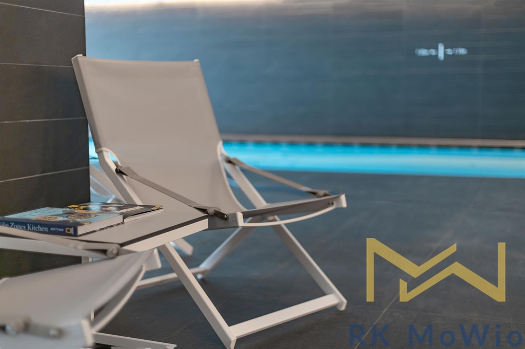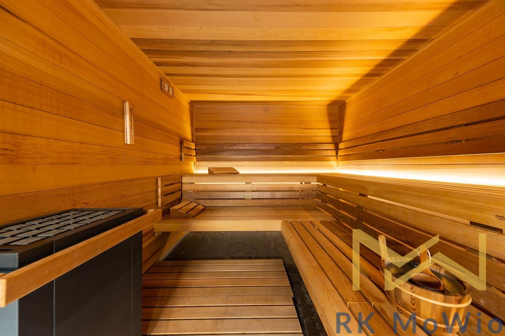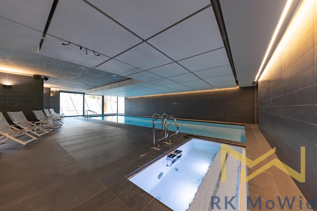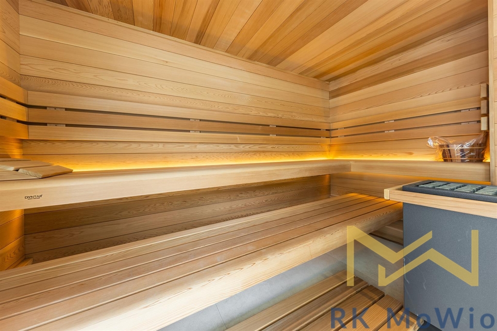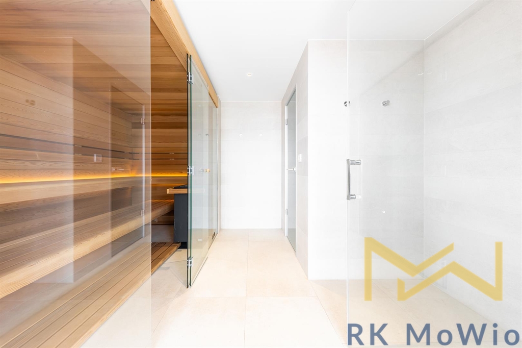 Spodní patro disponuje prostorným obývacím pokojem s krbem a kuchyňským a jídelním prostorem se vstupem na terasu, hlavní ložnicí s koupelnou, šatnou a vstupem na druhou terasu, dalšími 2 ložnicemi, také se vstupem na terasu, koupelnou, samostatnou toaletou, komorou. Do prvního patra vede stylové točité schodiště, kde naleznete galerii se vstupem na terasu a střešní zahradu s panoramatickým výhledem, koupelnu a wellness se saunou. Další vybavení bytu kuchyňská linka včetně lednice s mrazákem, varné desky, elektrické trouby, myčky, digestoře a mikrovlnné trouby; možnost instalace pračky a sušičky, přípravu pro vysokorychlostní internet, dřevěné podlahy a dlažba. Veřejné prostory jsou osazeny CCTV kamerami, vstup a vjezd je řízen čipovými kartami, byty jsou vybaveny bezpečnostními dveřmi a skly i alarmem. Fotografie jsou ilustartivní.