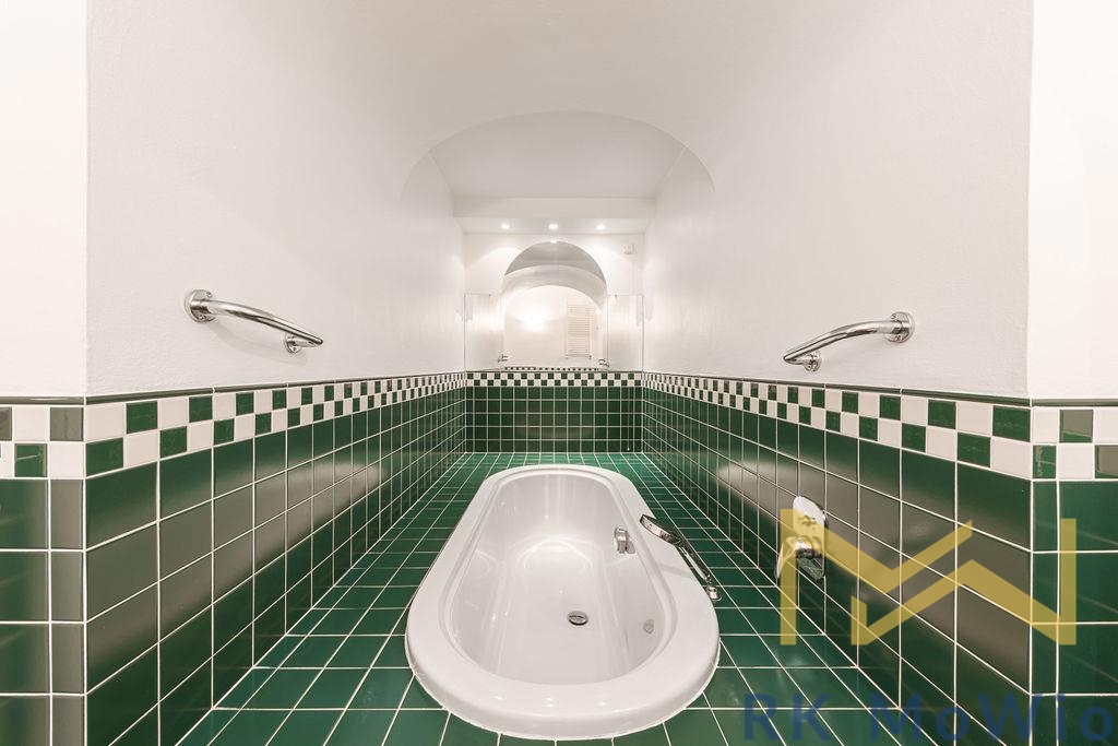 Bytová jednotka disponuje dvěma vstupními vchody, jeden vede z domovní chodby, druhý z pavlače. Půdorys tvoří vstupní hala, vzdušný obývací pokoj s jídelním prostorem, samostatná kuchyně, hlavní ložnice se šatnou a vlastní koupelnou (vybavená sprchovým koutem, umyvadlem, bidetem a toaletou), další 2 ložnice, samostatná koupelna (vybavená vanou, umyvadlem, bidetem a toaletou) a komora. Vybavení bytu: kuchyňská linka včetně lednice s mrazákem, plynové varné desky, digestoře, elektrické a mikrovlnné trouby; přípojka pro pračku a sušičku, příprava pro vysokorychlostní internet, dřevěné podlahy a dlažba.