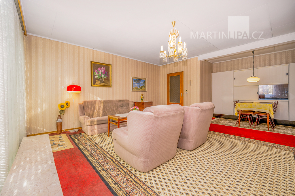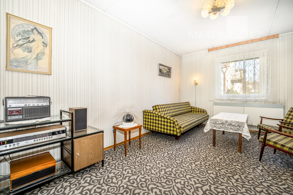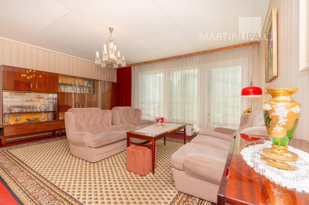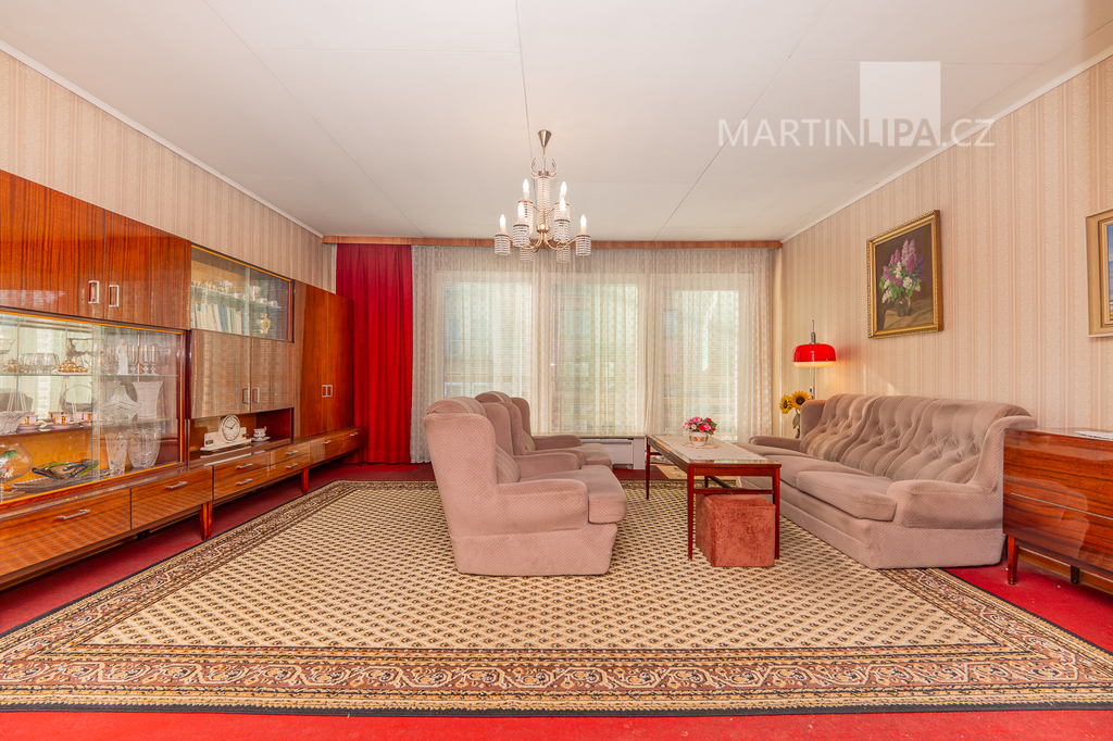 Obytná část domu má užitnou plochu 104 m² a funkční, přehlednou dispozici. Najdete zde tři ložnice, obývací pokoj a samostatnou, plně vybavenou sektorovou kuchyň, která je s obývacím pokojem propojena typickým servírovacím okénkem. Z obývacího pokoje je přímý vstup na lodžii. Všechna okna byla v roce 2006 vyměněna za plastová dvojskla.
