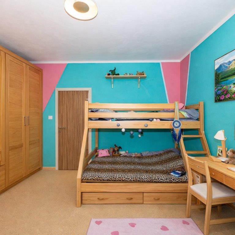 Jižní orientace: obývací pokoj a dětský pokoj dostatek světla po celý den