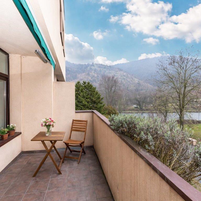 Z lodžie se otevírá krásný výhled na Vltavu a historické keltské oppidum Závist.