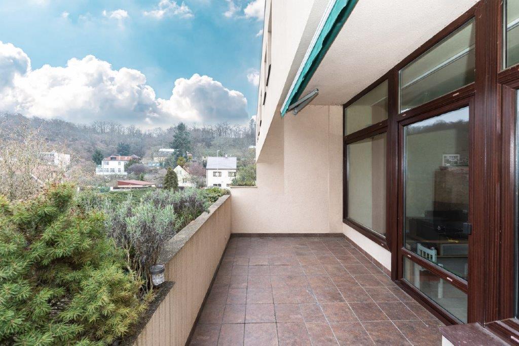 Prostorná lodžie nabízí příjemné místo k posezení, relaxaci nebo pěstování zeleně