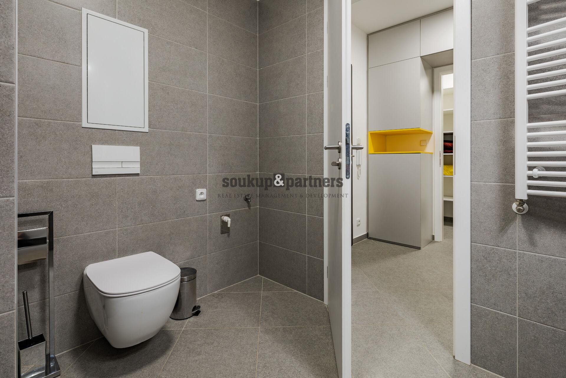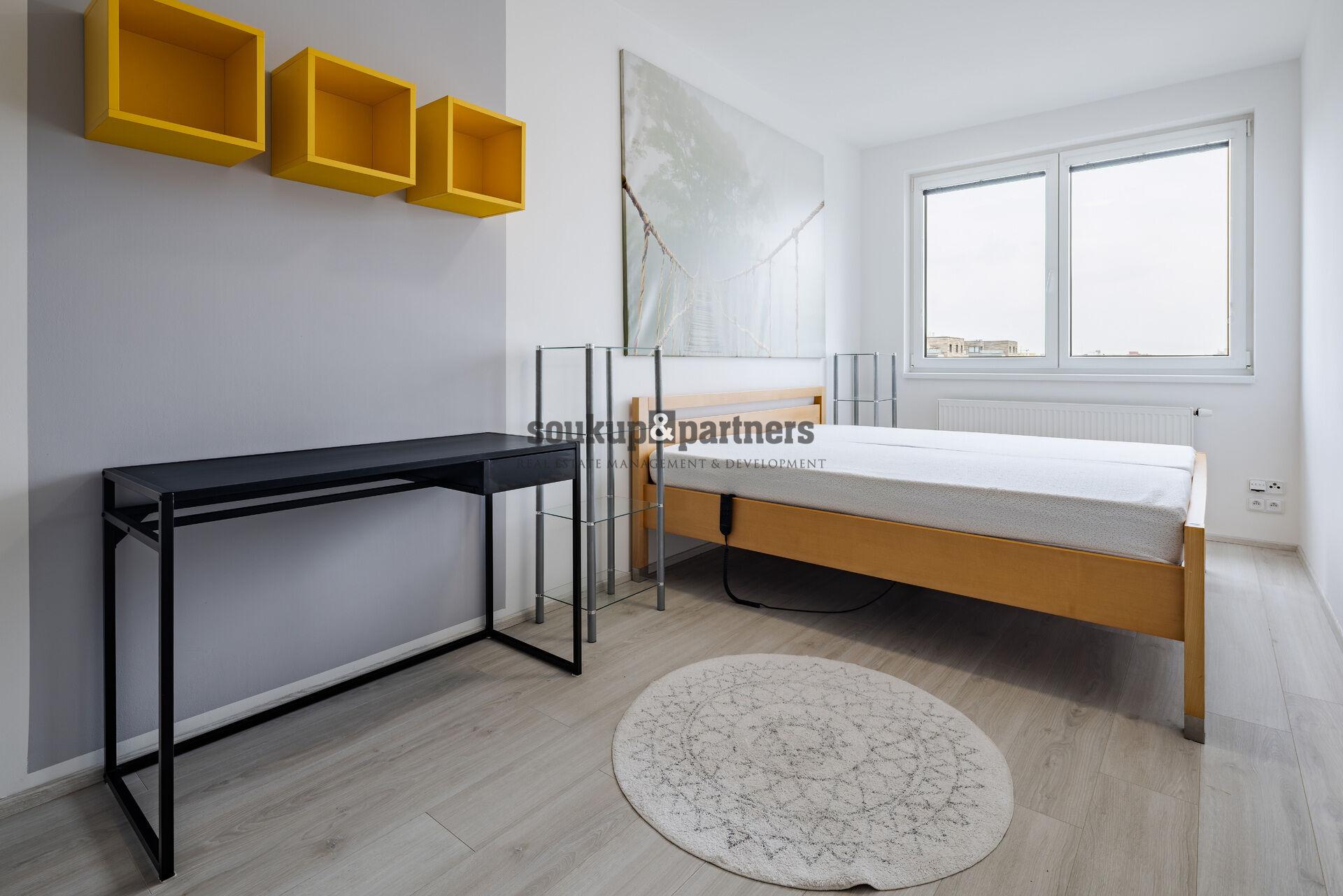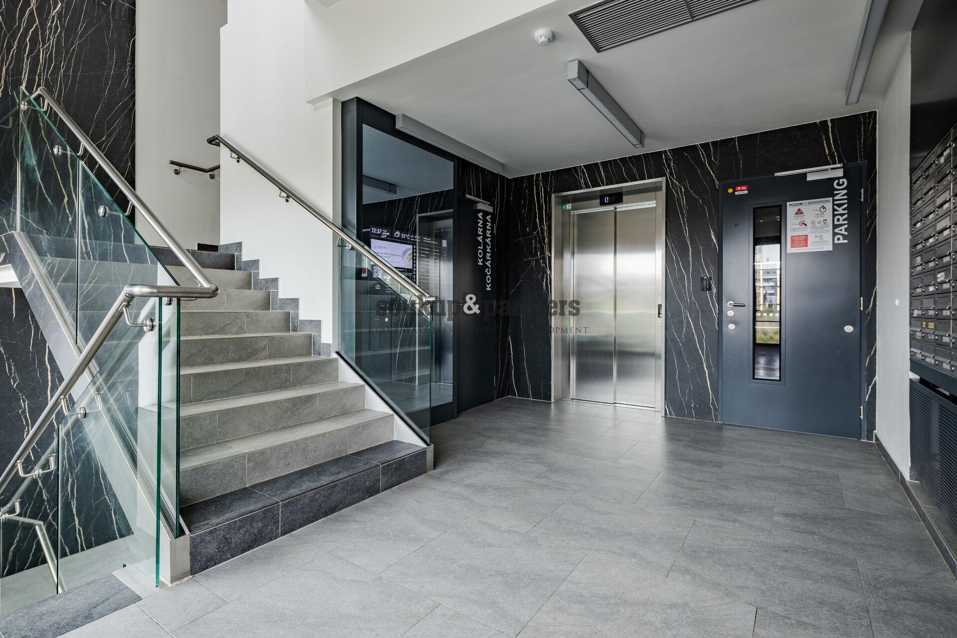 K pronájmu nabízíme moderní a plně vybavený byt 2+kk o velikosti 55 m² (včetně balkonu), situovaný ve 4. patře novostavby z roku 2023 v lokalitě Praha 5 – Barrandov.