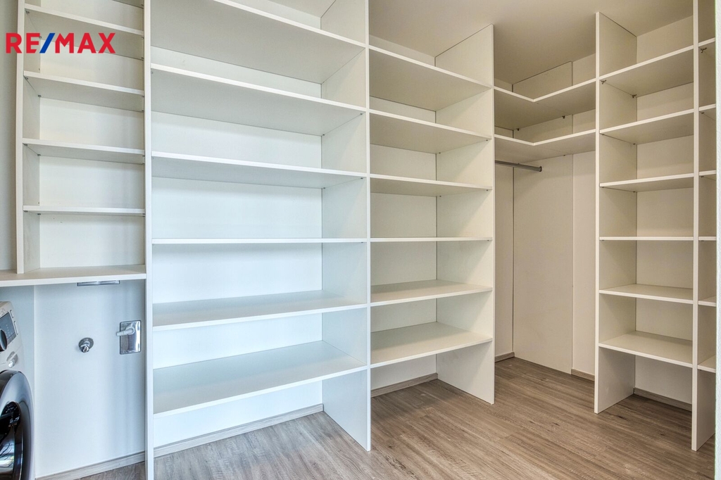 Byt se skládá z pokoje s plně vybaveným kuchyňským koutem (s varnou deskou, troubou, myčkou, kombinovanou lednicí), ložnice s velkou šatnou s pračkou a sušičkou, koupelny s WC a předsíně s vestavěnou skříní. K bytu náleží velkorysá lodžie přes oba pokoje, garážové stání a sklep. Byt je vybaven rekuperačním větráním a chytrým osvětlením Philips Hue.