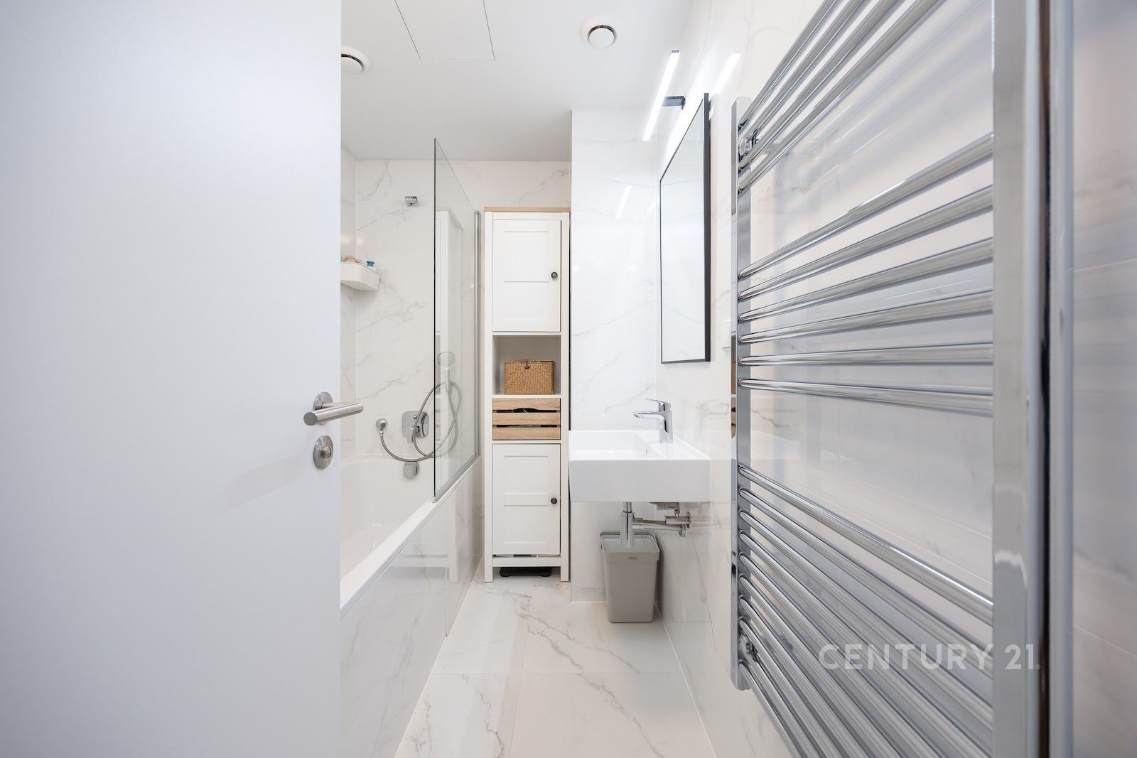 • Prémiové standardy: Velkoformátová okna, dřevěné podlahy, špičková sanita a systém rekuperace pro neustále čerstvý vzduch. Tady se na materiálech nešetřilo.
