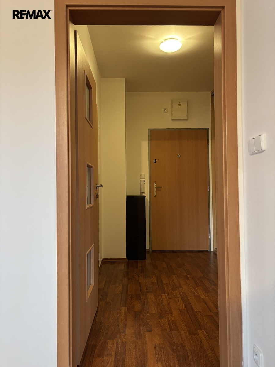 V bytě se nachází předsíň s prostornou vestavnou šatní skříní a zrcadlem, ze které se vstupuje do koupelny, ta je vybavena vanou, součástí vybavení koupelny je pračka, WC v koupelně. Hlavní obytný prostor tvoří obývací pokoj s moderní kuchyňskou linkou, která nabídne dostatek pracovního prostoru i pro náročné kuchaře/kuchařky, nechybí elektrická varná deska s digestoří, elektrická trouba, lednice s mrazákem a myčka. Byt je velmi slunný, přes velká okna proudí dovnitř dostatek světla po celý den. Z obývacího pokoje se vychází na balkon s podlahou z exotického dřeva a krásným výhledem do zeleně. Z hlavní místnosti se dále dostanete do ložnice. V ložnici je umístěna manželská postel a šatní skřín.