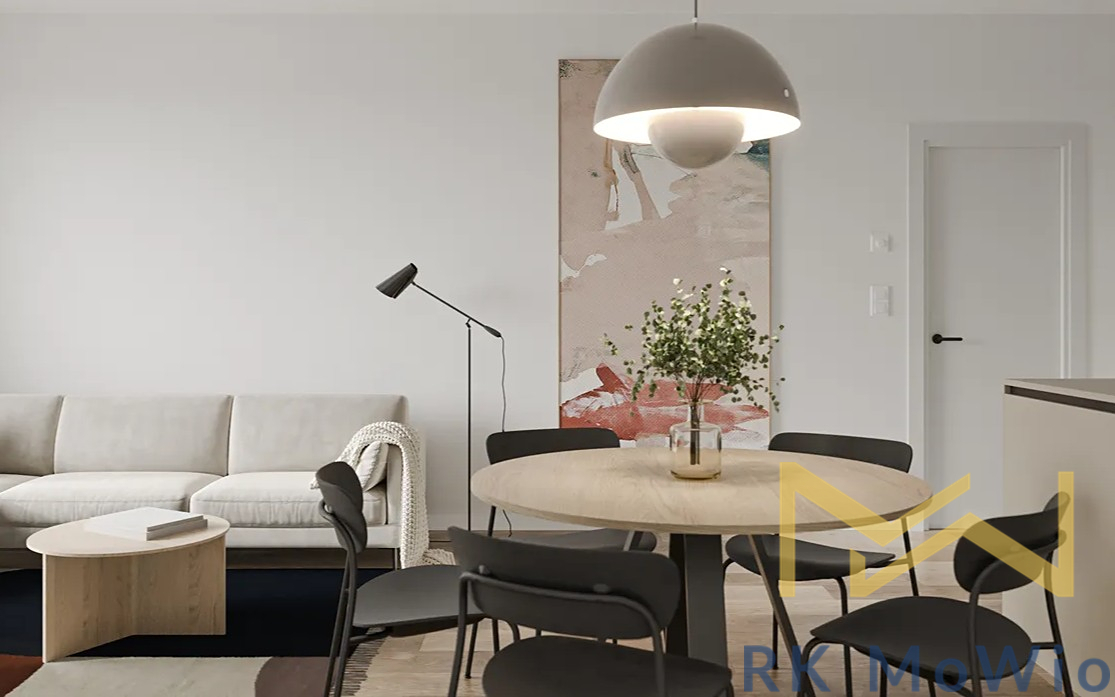 Půdorys bytové jednotky disponuje vstupní halou, obývacím pokojem se vstupy na terasu, kuchyňským koutem a jídelním prostorem, hlavní ložnicí, druhou ložnicí, 1 koupelnou (s vanou/sprchou, umyvadlem) a samostatnou toaletou. Vybavení bytu: kuchyňská linka (včetně lednice s mrazákem, sklokeramické varné desky, digestoře, myčky a elektrické trouby), vestavěné skříně, příprava pro vysokorychlostní internet, dřevěné podlahy a dlažba. Možnost pronajmout parkovací stání a sklep za extra příplatek.