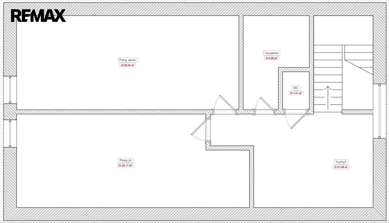 11 m² doplňkové zázemí / prostor pod schodištěm včetně schodiště