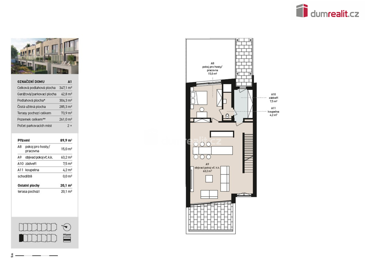 Moderní, multifunkční dům, 6+kk, 2 x terasa, sklep, 2 x parovací stání, Praha 12 - Libuš